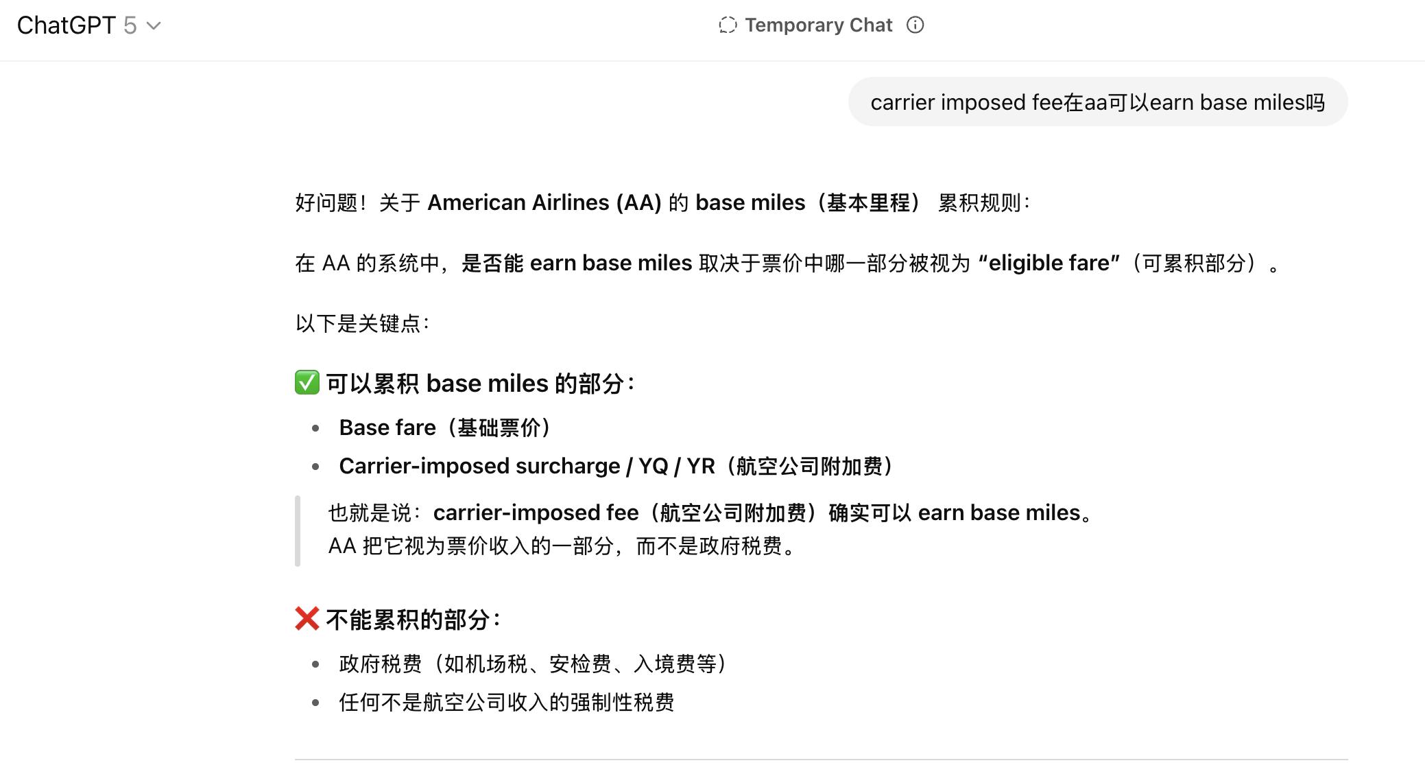 hyatt的aa challenge第一阶段结束刚好卡在这个往返的trip之间 想问下怎么能知道去程能earn多少miles? 另外carrier imposed fee是可以earn base miles的吗?