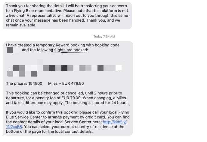 - Message 客服。不一定立刻回复,但会直接给出价格,并create好PNR,让你打电话付税费(相当于可以hold)