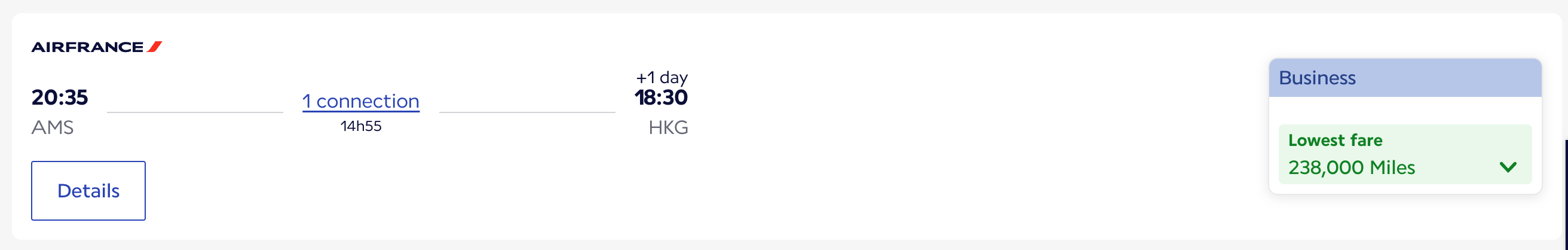 - lowest possible fare指的是某一条航线在AF/KL award ticket里的最低值,比如: