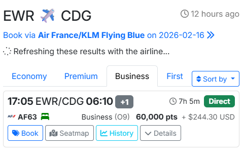 - EUR – CDG/AMS (connection) – USA with promo (18k in Y or 45k in J with promo)