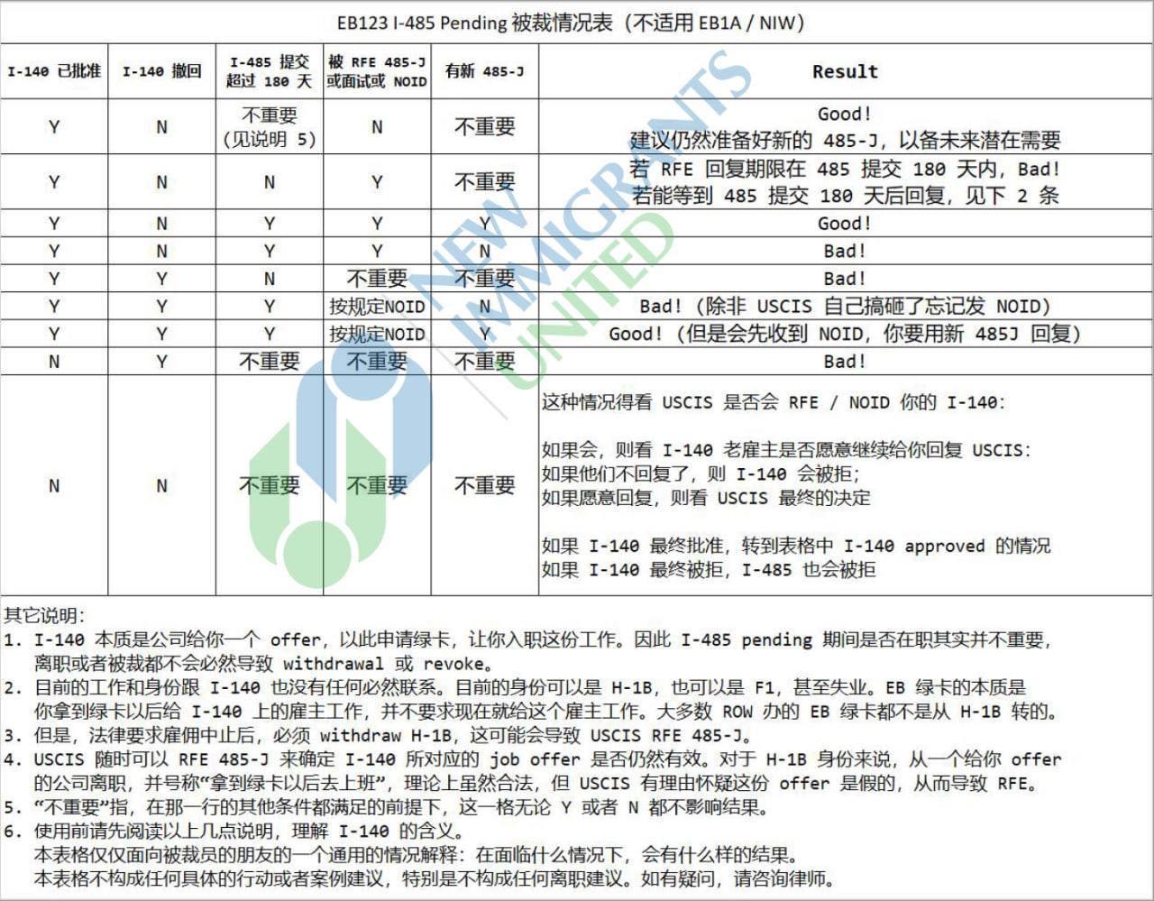 这个表的大前提是被雷/跳槽,所以如果此时已经失业且RFE I-485J的回复期限在180天内,当然非常糟糕,因为此时必须由I-485的原雇主提供I-485J,而你已经失业/跳槽当然不可能有“原雇主”来做这件事。新雇主提交I-485J没有用因为这就坐实了在180天内换了工作,EB2/3需要重走PERM,EB1/NIW需要重交I-140。
