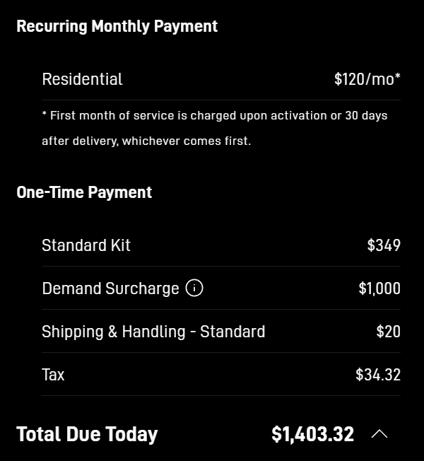 马斯克的设备好歹真的成本比较高,相控阵天线不太可能$10买到。非mini卫星锅我觉得fair market value $150-$200吧,就当租设备每个月套餐月租从$30变成$60,半年左右分期,也还可以接受。