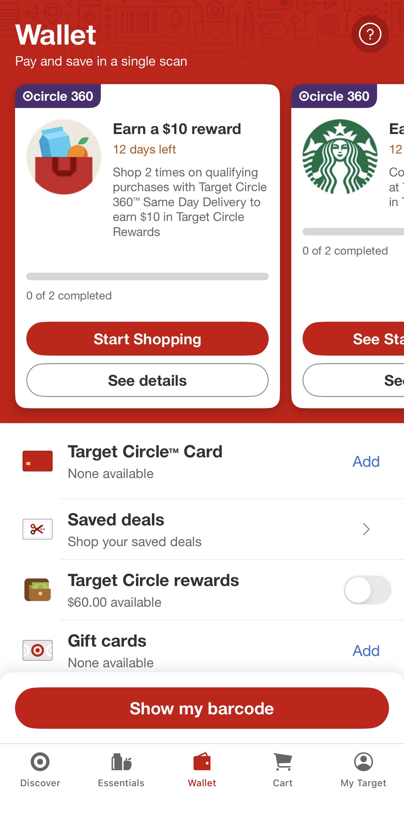 貌似这个活动是target circle 360会员的。开好会员后,打开Target App,点击Wallet,上面横幅位置有个加Wishlist送10刀的活动,点进去随便加10个商品到你的心愿清单就可以获得了。可以选择private list,不让别人看到。