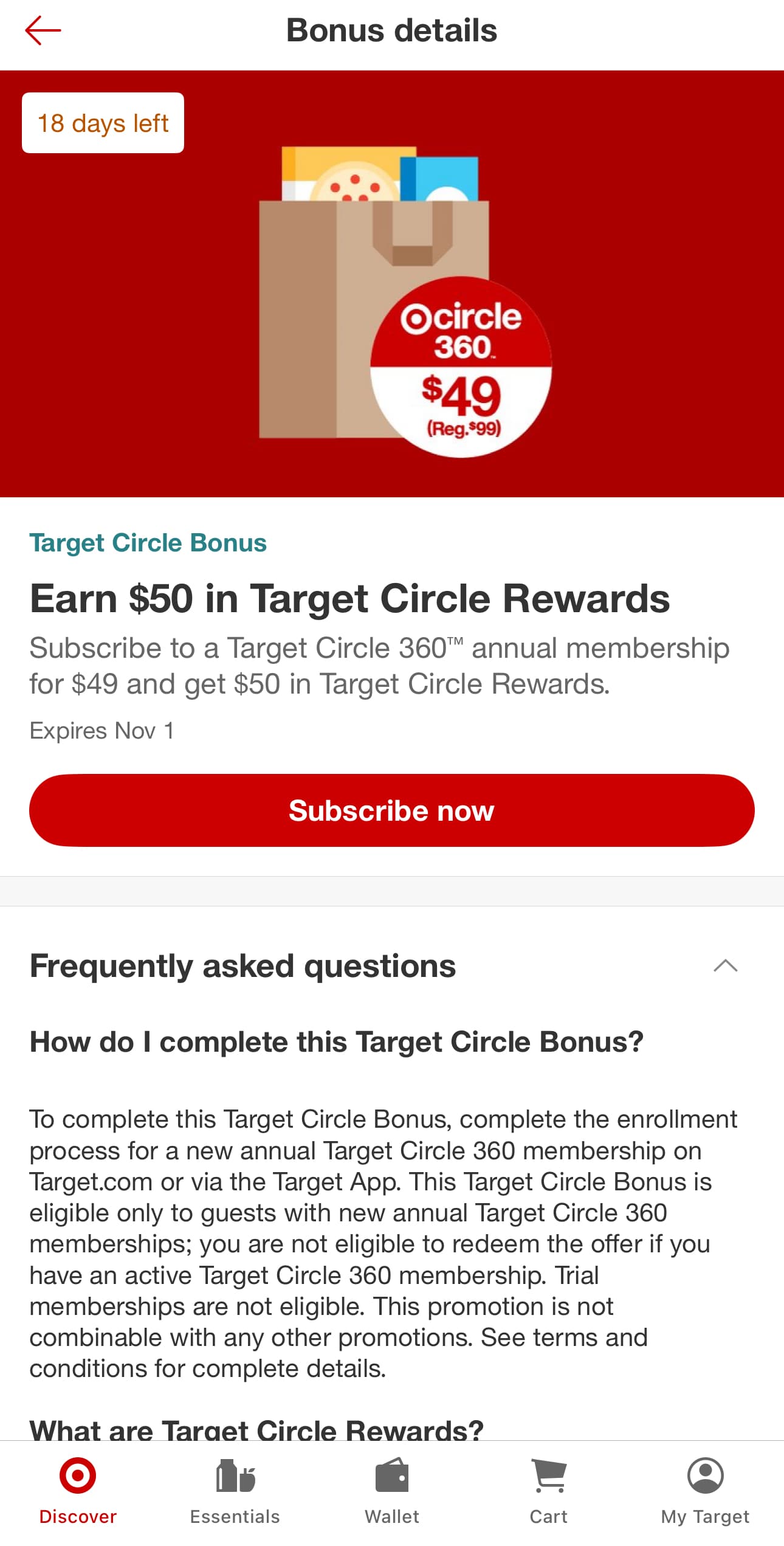 书接上回50刀开Target Circle 360会员,没开的先去看看