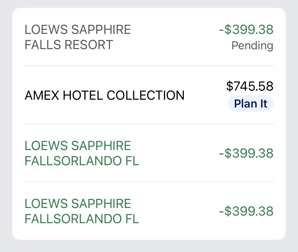 订了一天的Loews Sapphire Falls Resort,目前还没charge,等有动静了再更新