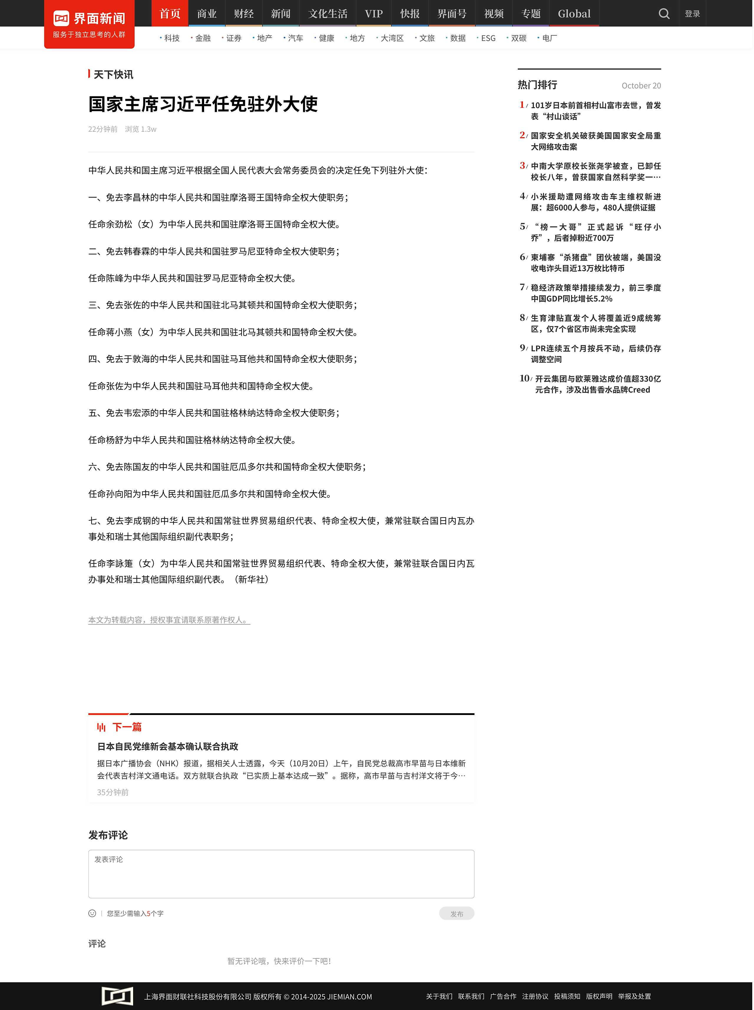 4月份的时候升职成正部长级别的商务部国际贸易谈判代表兼副部长,现在只是把之前世贸组织代表的职位免去,没什么大新闻,散了吧