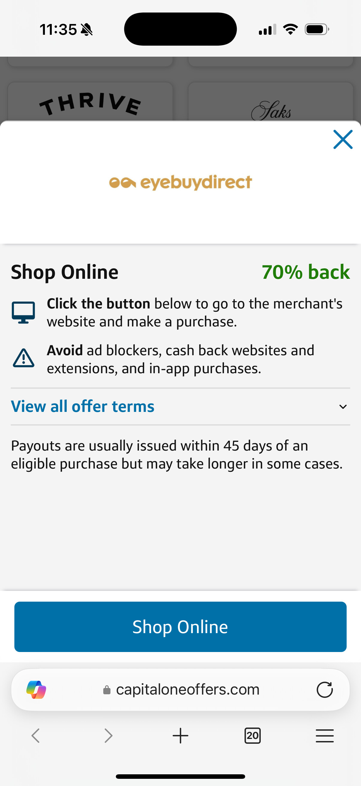 10/20/2025(dead)EyeBuyDirect 70X miles