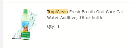 TropiClean: Zinc Gluconate, Cetylpyridinium Chloride, Green Tea Extract.