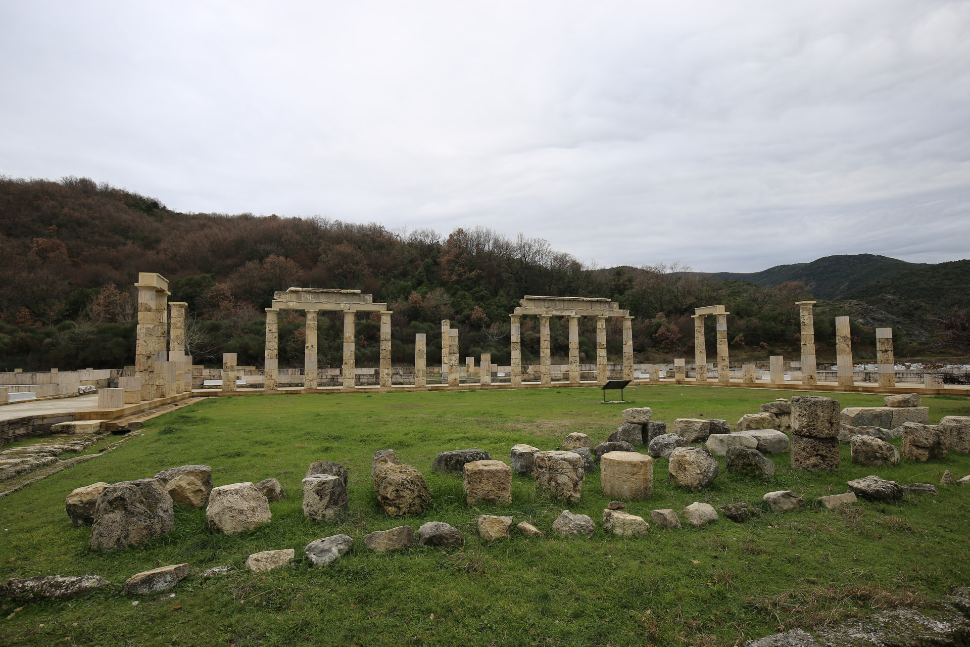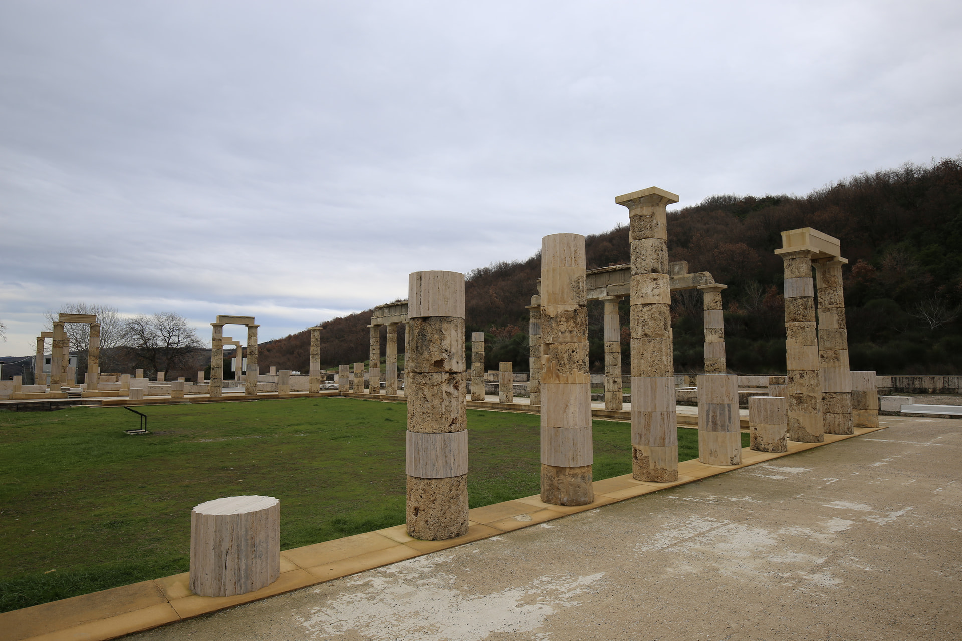 接下来去了宫殿遗址。从停车处步行了大概20分钟上山。宫殿没有剩下多少,只有零星几个柱子 (考古学家拼上去的) 展示曾经的马其顿王宫。不过这里可以看到非常壮观的山脉。