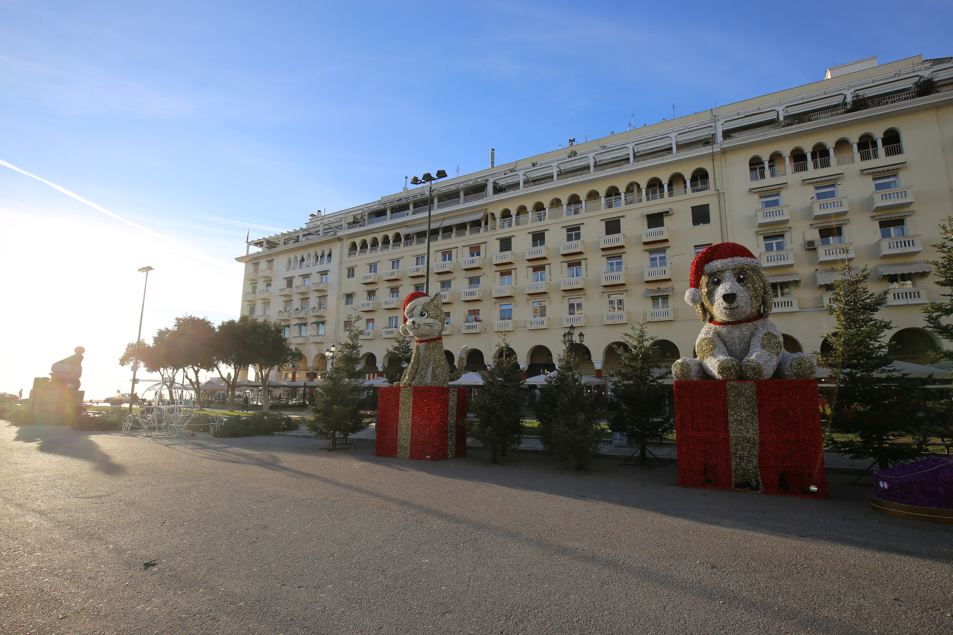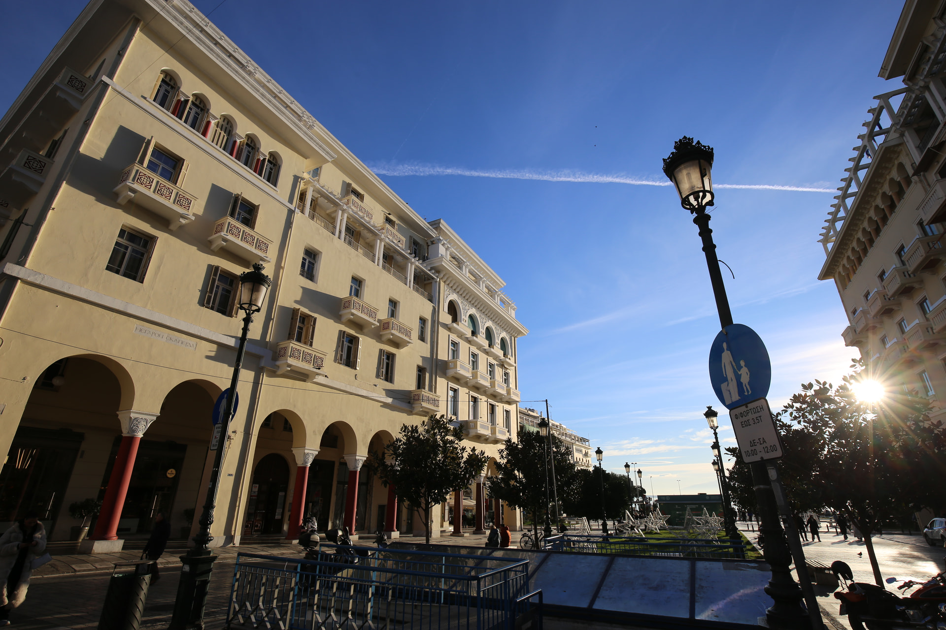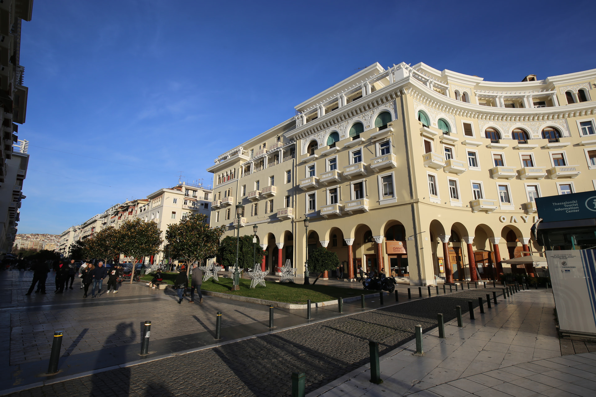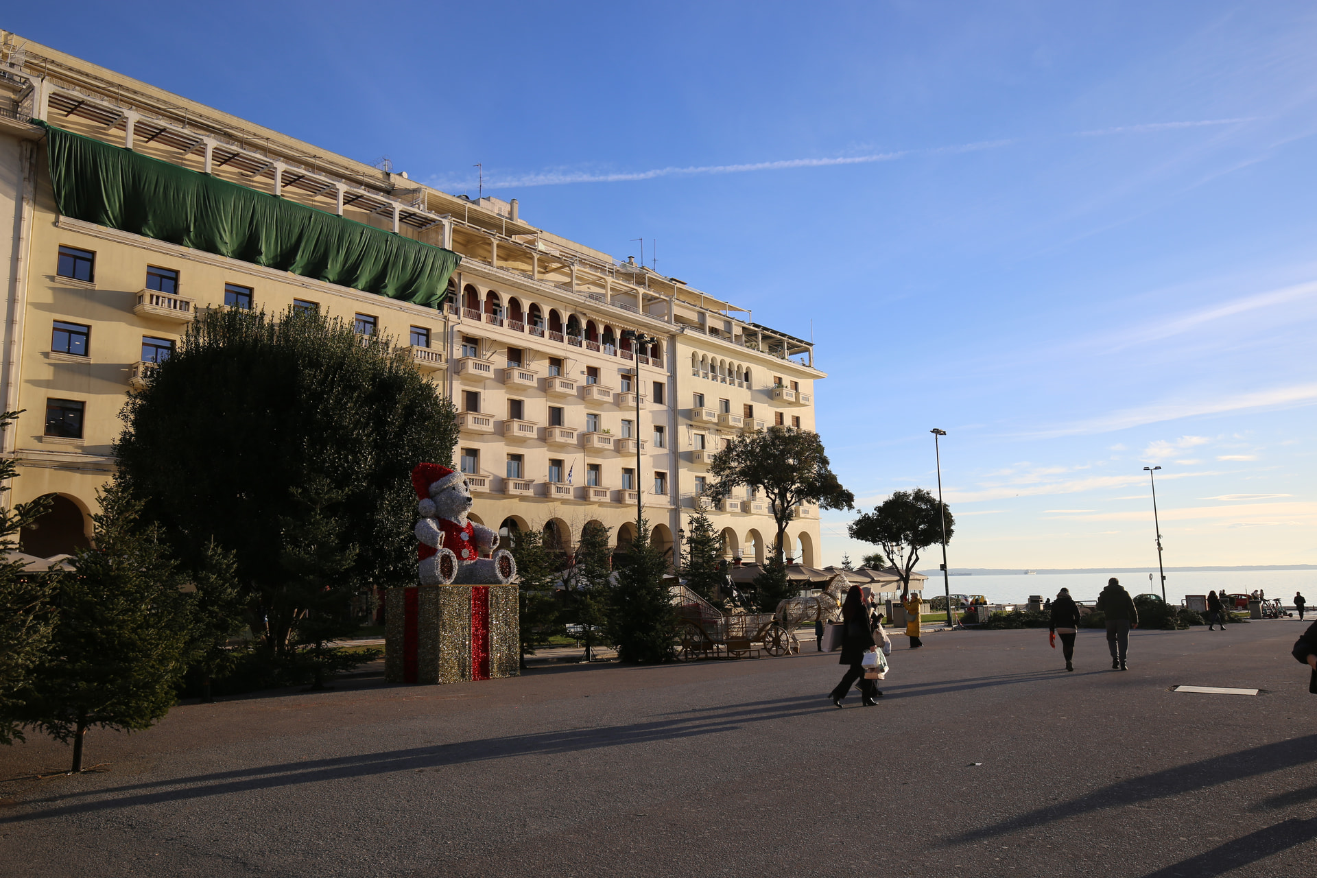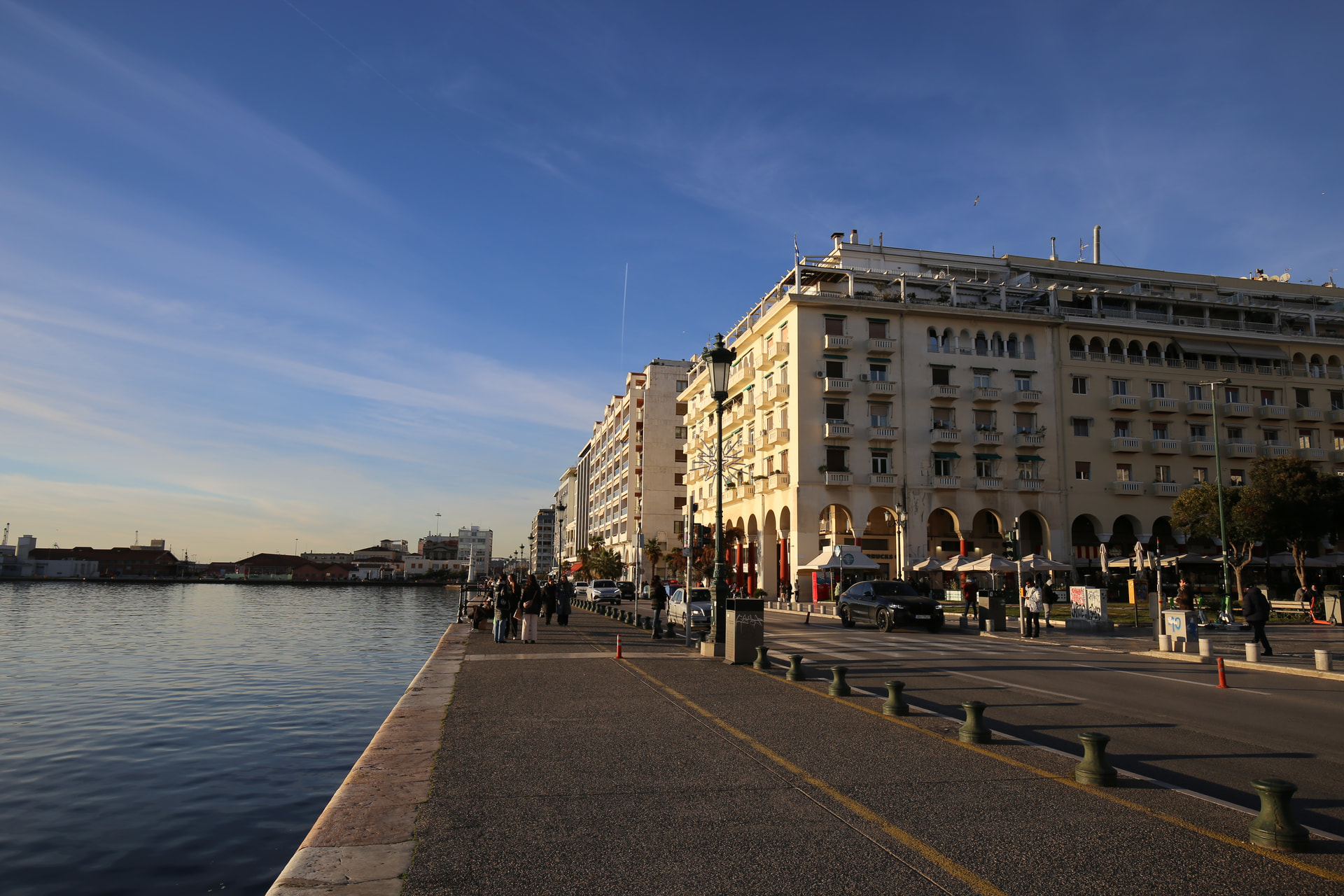 最后去的是亚里士多德广场。这里有很漂亮的欧式建筑,而且就在沿海大道旁边,晚上亮灯应该最美,不过在这里看日落也是不错的