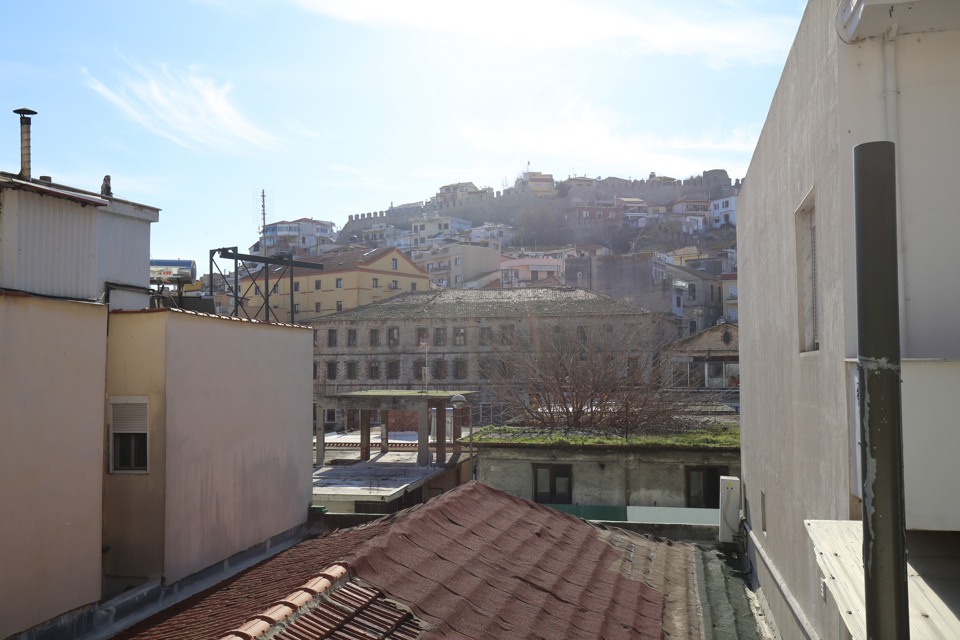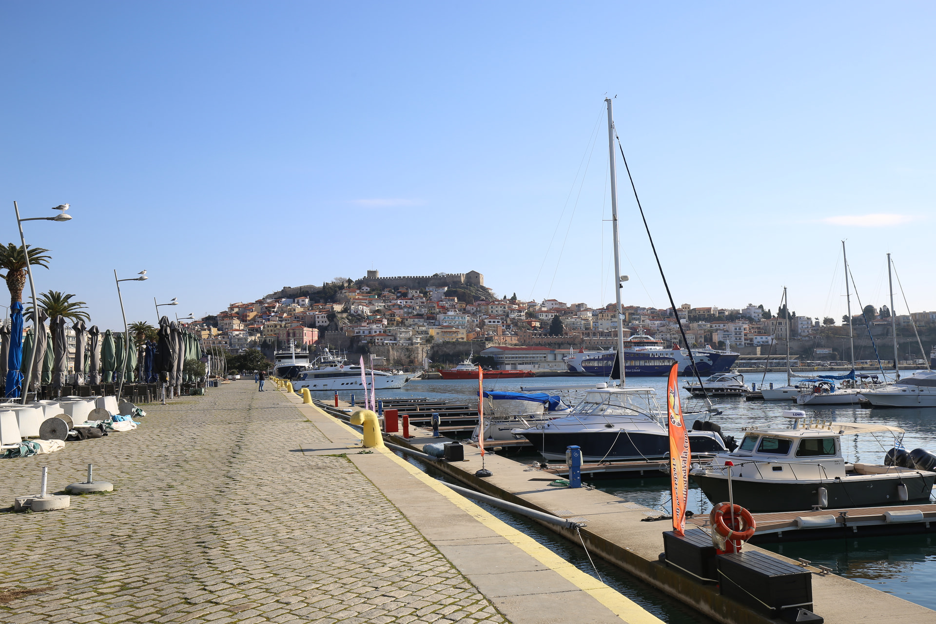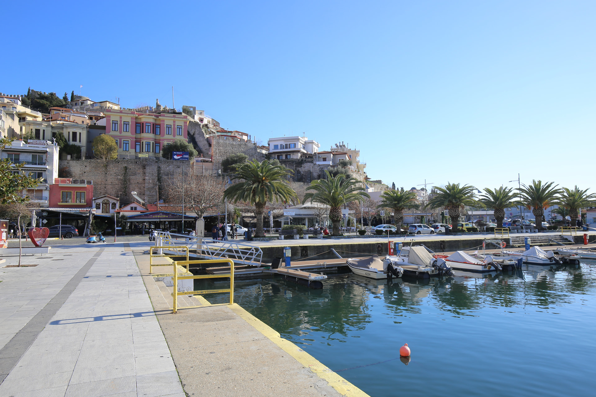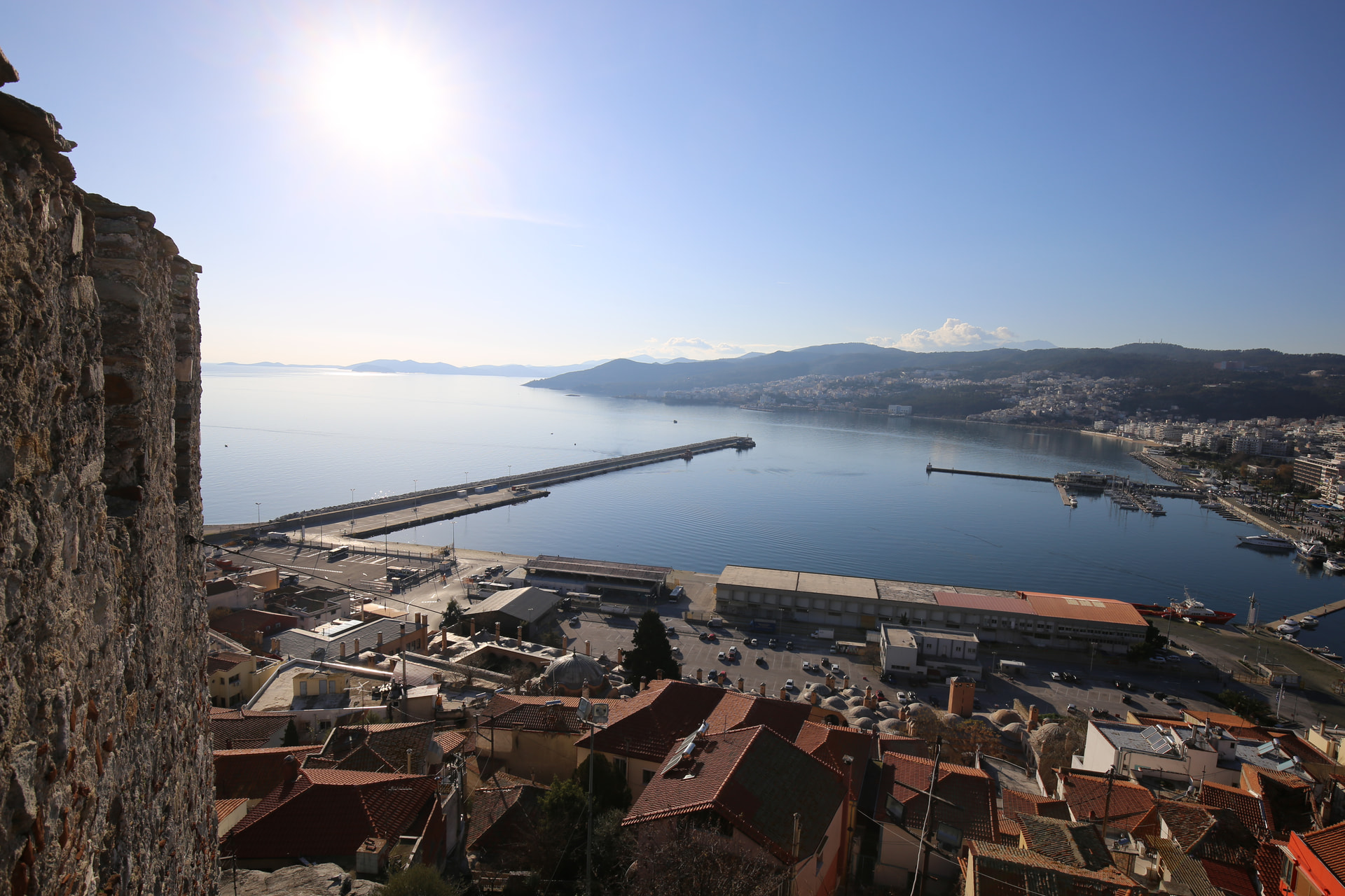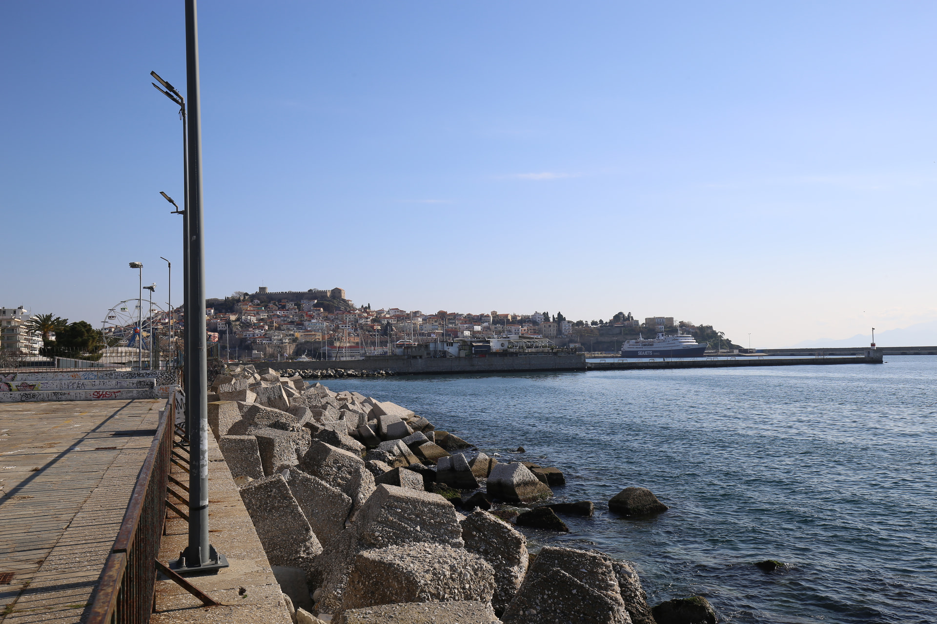 从遗址回城,每天在码头看到山顶的城堡。夏天码头这里应该很多人,冬天就很冷清。