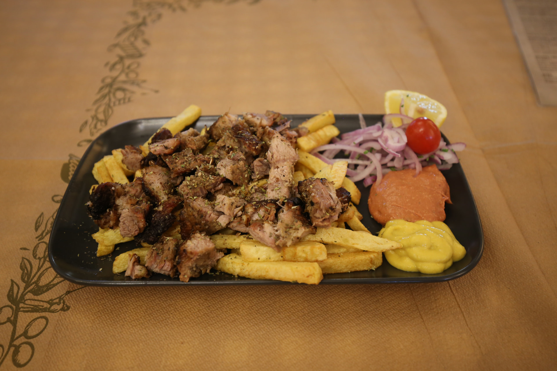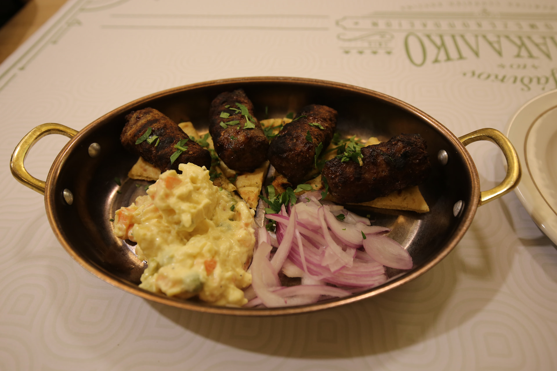 晚餐点了希腊传统美食,烤猪肉。