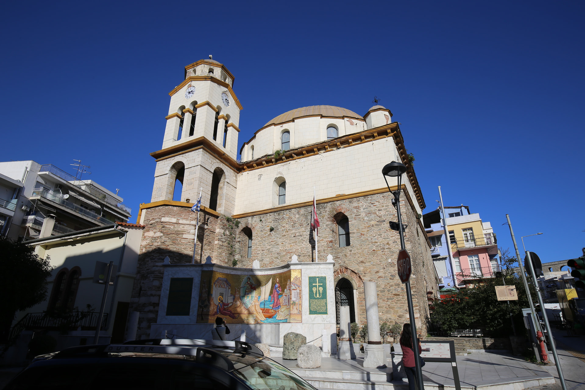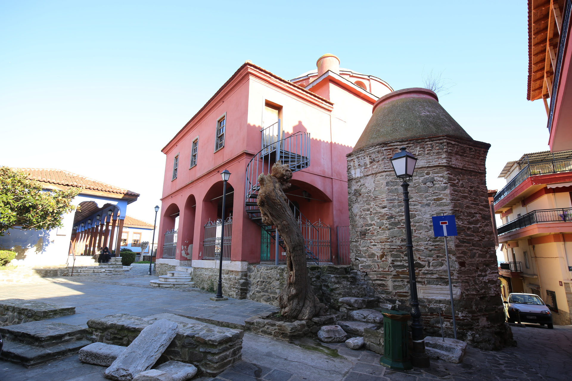 去卡瓦拉城堡前路过清真寺。希腊的清真寺普遍被阉割了,宣礼塔被字面意义上割除,只留下一个不伦不类的墩子。土耳其那边遗留的拜占庭教堂则是清一色被改造成清真寺。所以说这两个民族有惊人的一致性