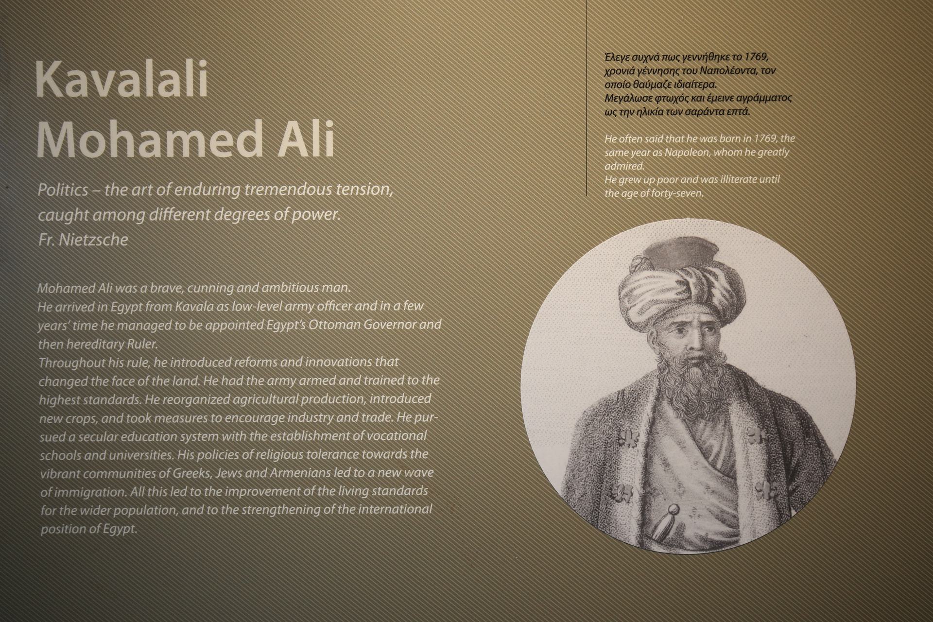 阿里故居后来被埃及政府买下,改造成类似国父纪念馆,并精心维护,还在外面建了一个铜像。来这里自然想到了前几天刚参观的凯末尔博物馆。 两国的国父都在希腊北部出生,而且故居博物馆都是由政府维护,你说怎么这么巧?马其顿真是天降伟人频出的地方,2000多年前还出了亚历山大。