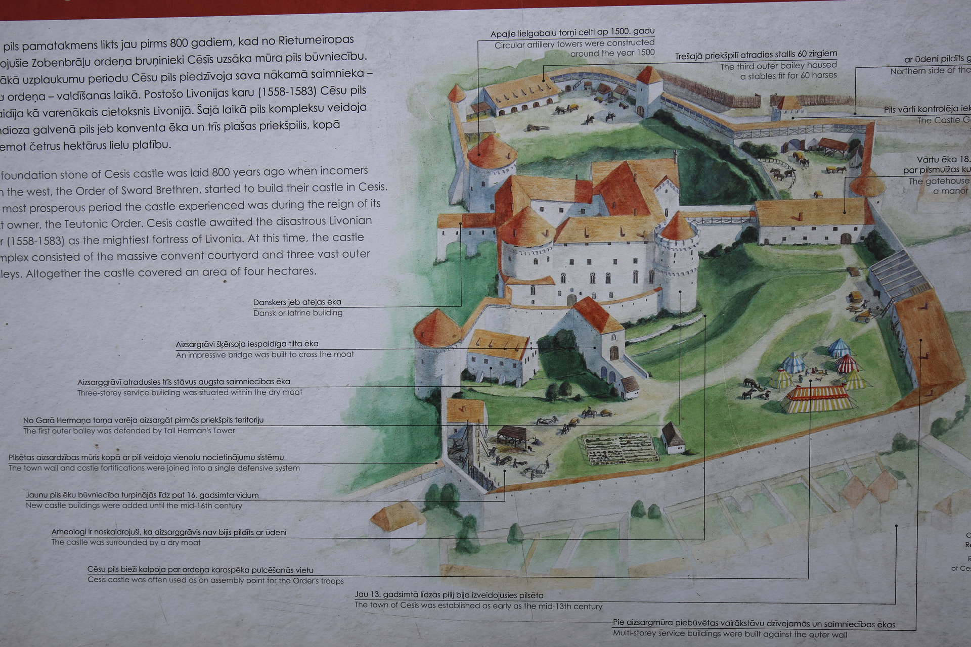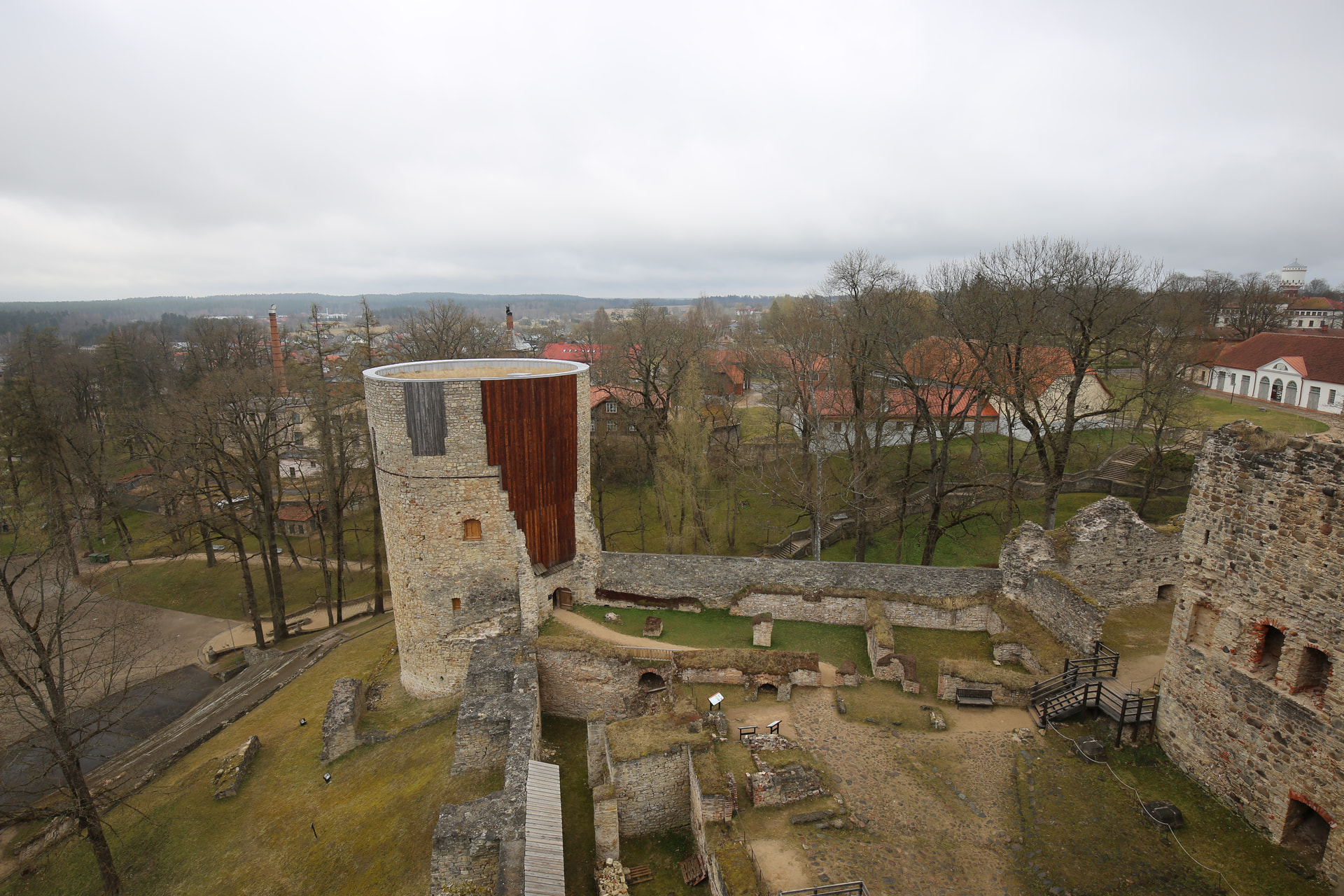 这个城堡大概800年前第一次修建。后来条顿骑士团掌管城堡,并建了许多加固工程。后来利沃尼亚战争中,这座城堡损毁严重。