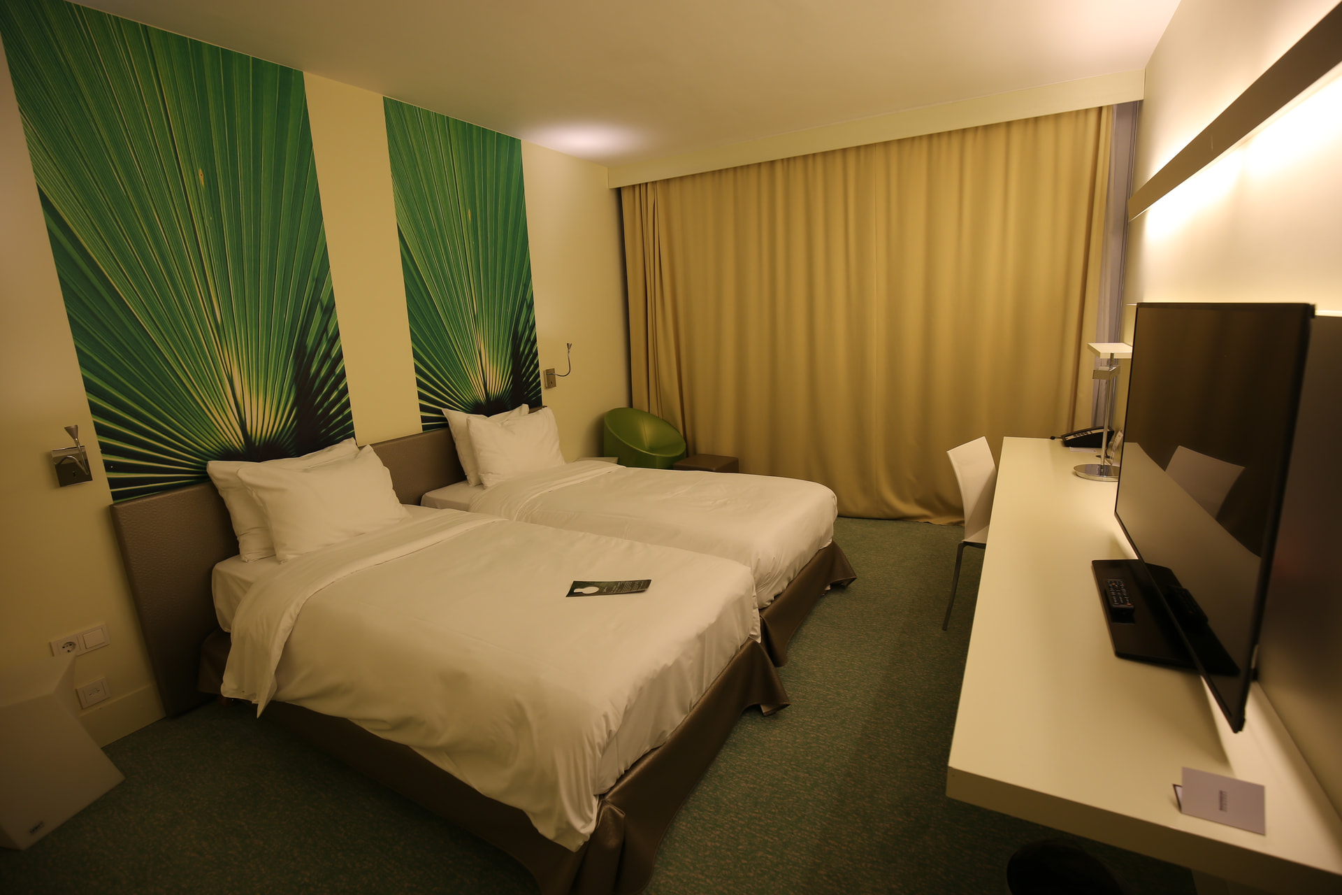 - 前台指出无法给我升级到海景房。这我也猜到了,所以我只请求他们给我升级到双床房。最后前台成功给我弄到了一间带阳台的双床“城景房”