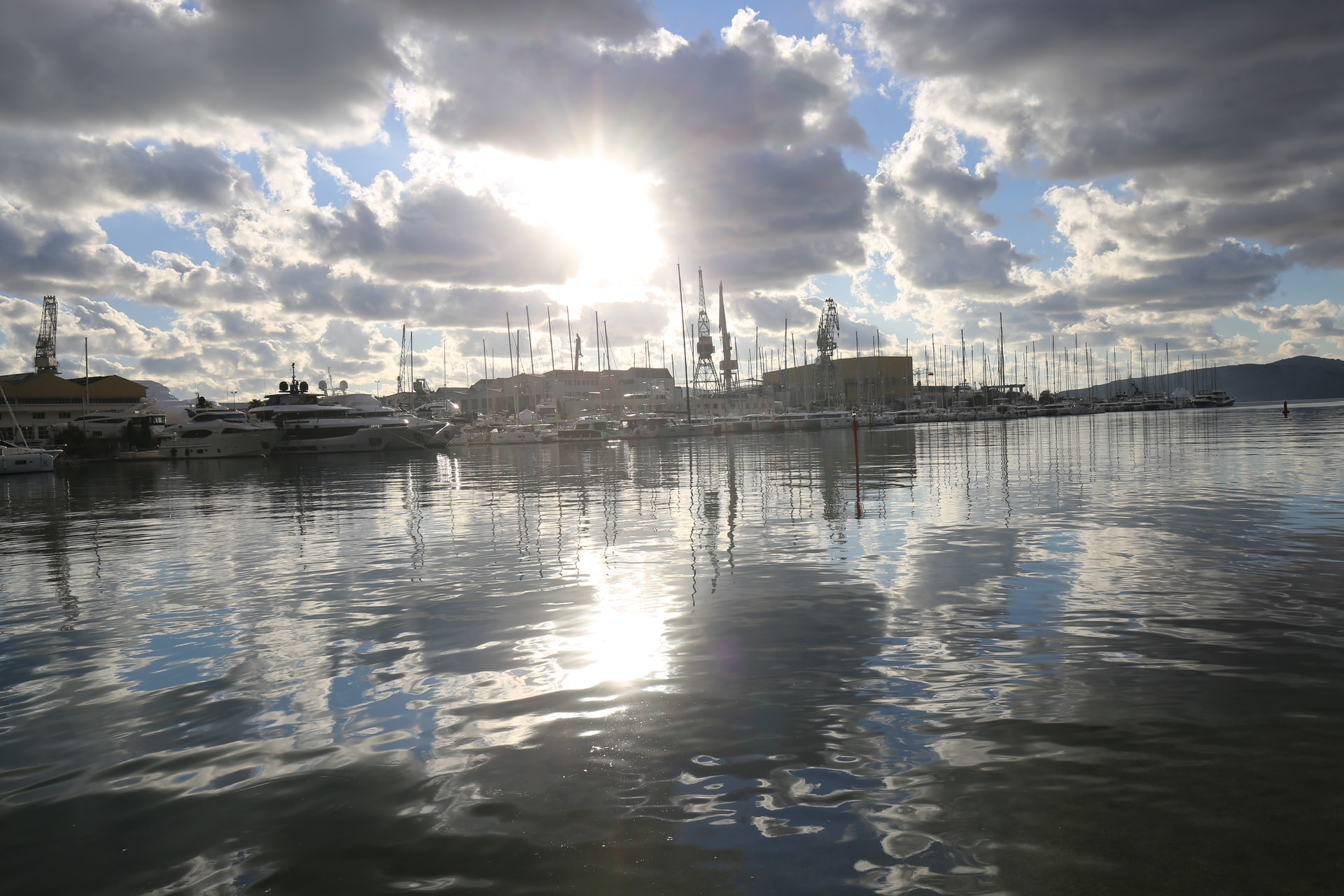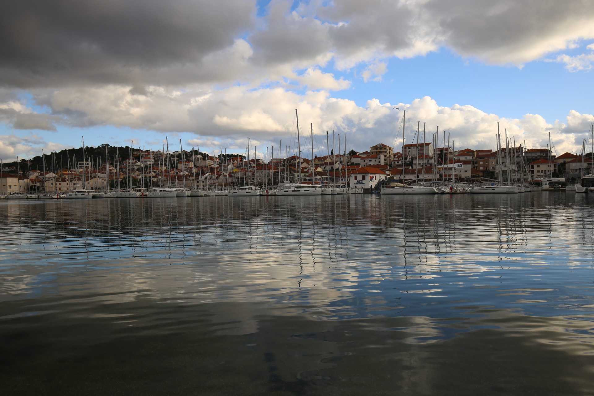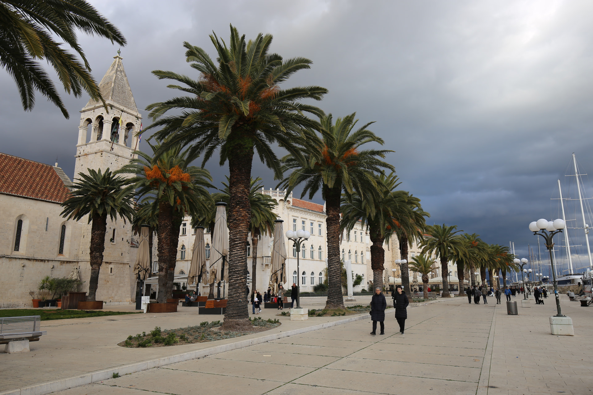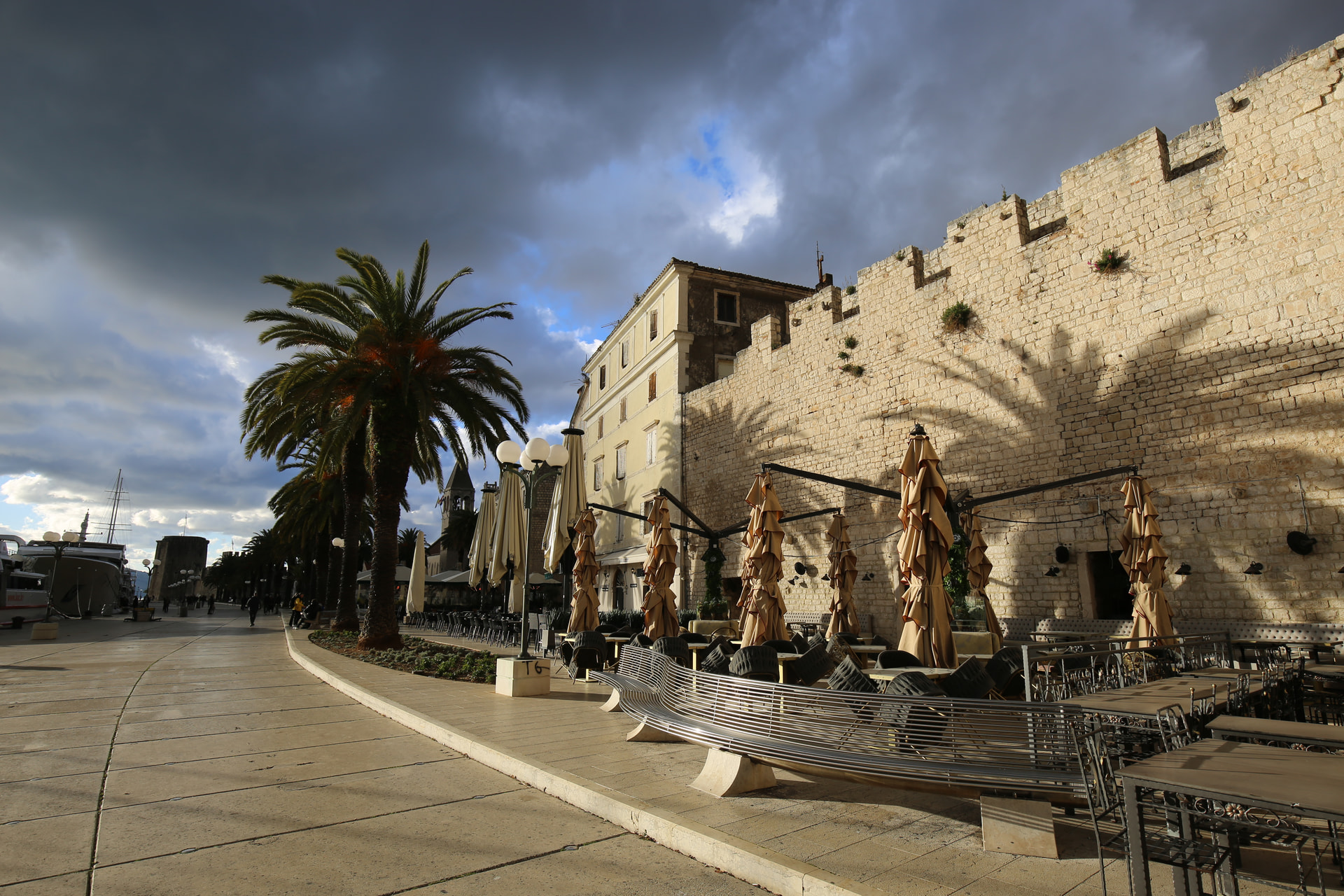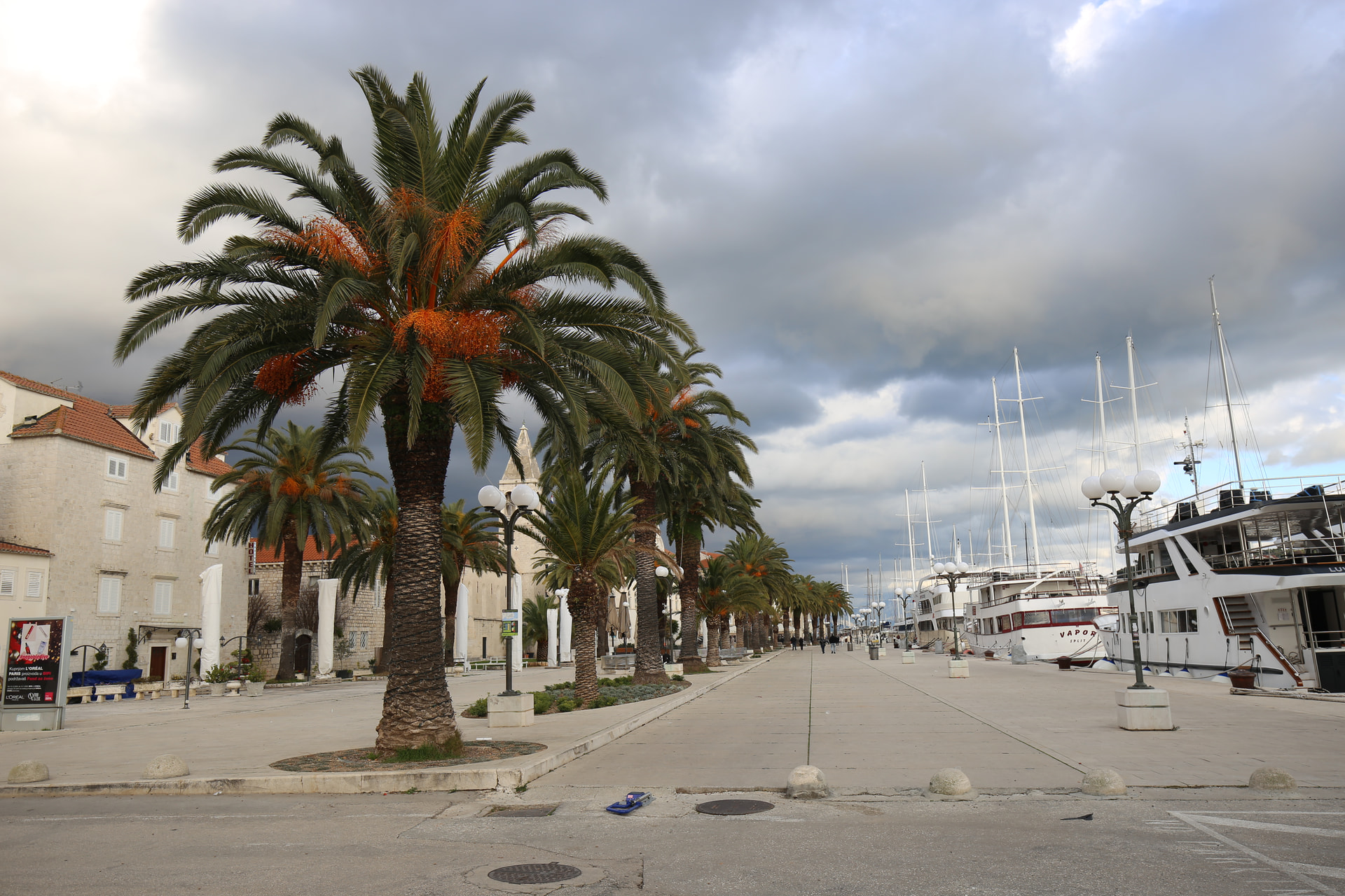 这天的天气有些复杂。乌云密布,但同时有充足的阳光穿越云层,所以拍起来一会儿乌云一会大太阳。冬天的亚得里亚海岸经常下雨,所以有这种天气其实是常态。