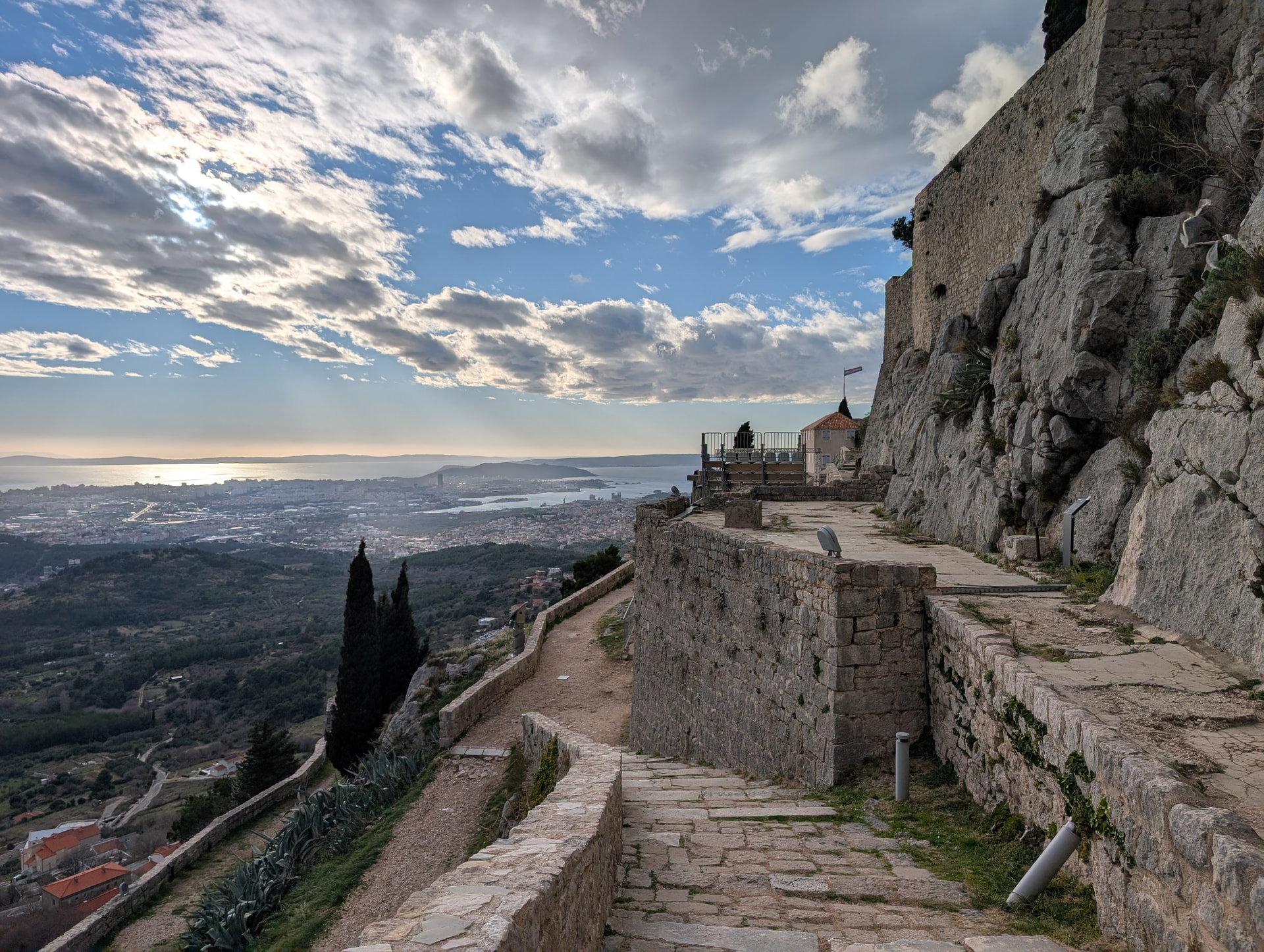 → SPU,飞机其实挺空,上座率还不足50%。下飞机的时候发现只有我们这一个航班,领行李也特别快。SPU 明显翻修过,看起来很新。从机场出来就在主干道看到巴士车站 (37),这个巴士车往返于斯普利特市区 - 机场 - 特罗吉尔。考虑到这天是元旦节,克国所有景点关门,我觉得还不如去特罗吉尔转一圈看看旧城,至少可以拍几张不至于浪费元旦这天。所以我们就拉着行李坐巴士车去了特罗吉尔。