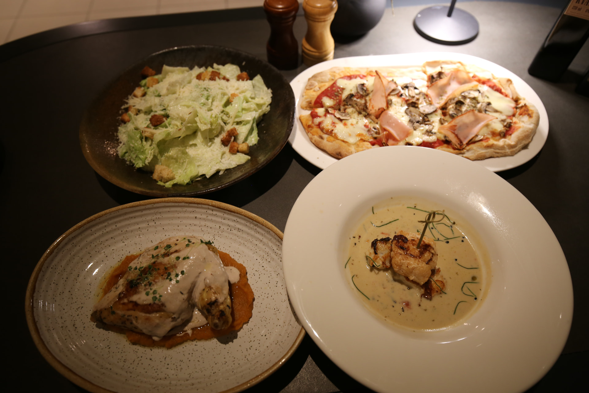 - Caesar Salad (18 Euros) — 如果要加鸡肉/牛肉/三文鱼还要额外加钱