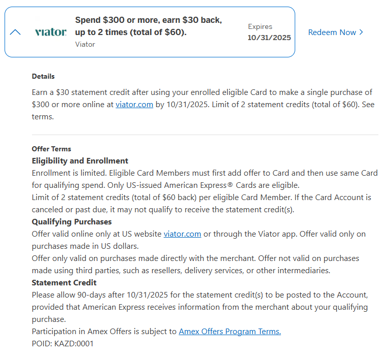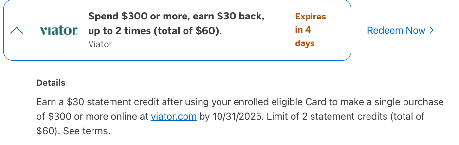 最近打算出去玩,看到Viator上刚好有项目就买了600块的。卡里有Viator的offer