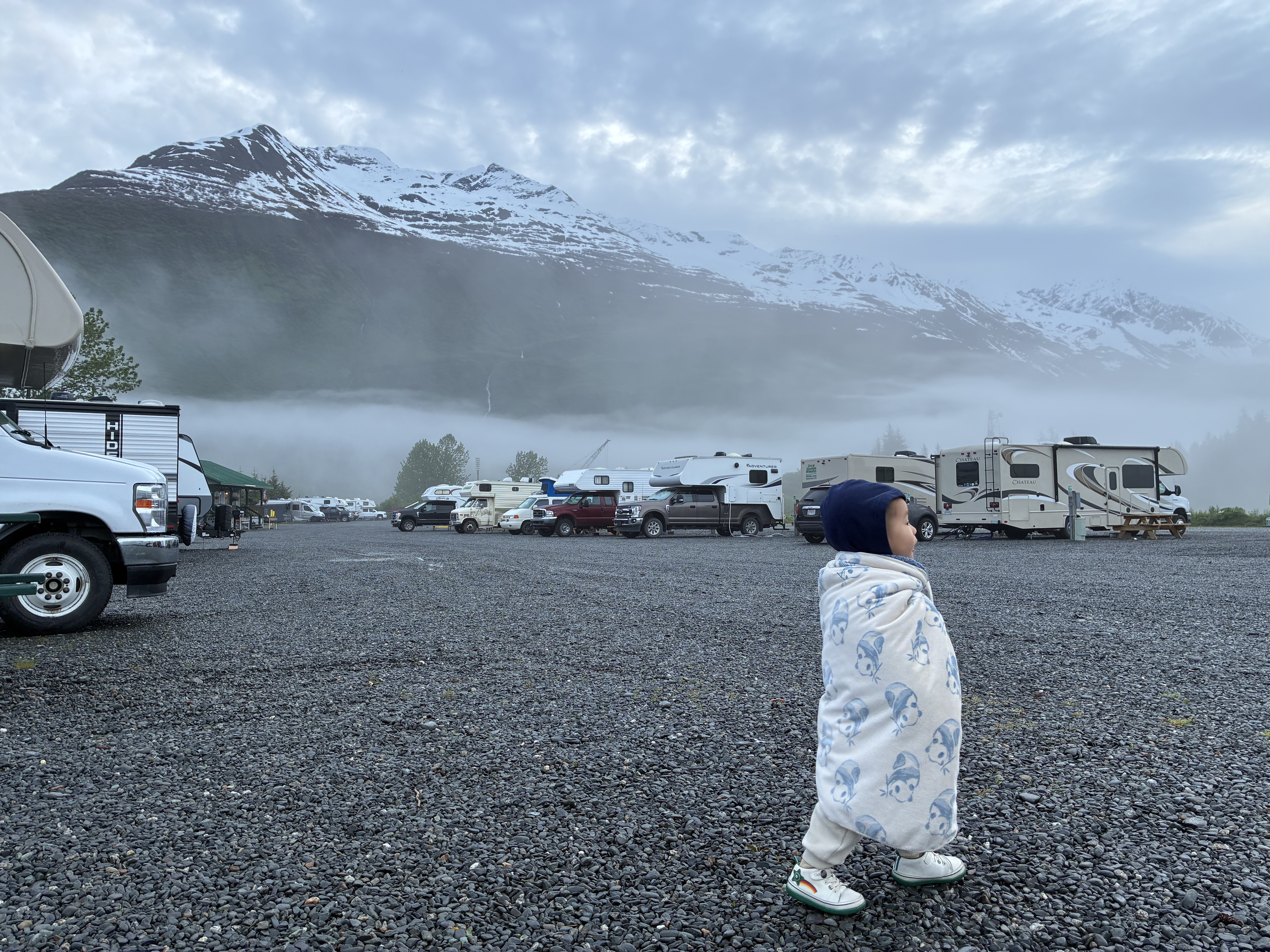 06-13 开到Homer,再开到一个在Moose Pass湖边的宝藏房车野营地过夜,给兔崽子在房车过了一个生日哈哈。