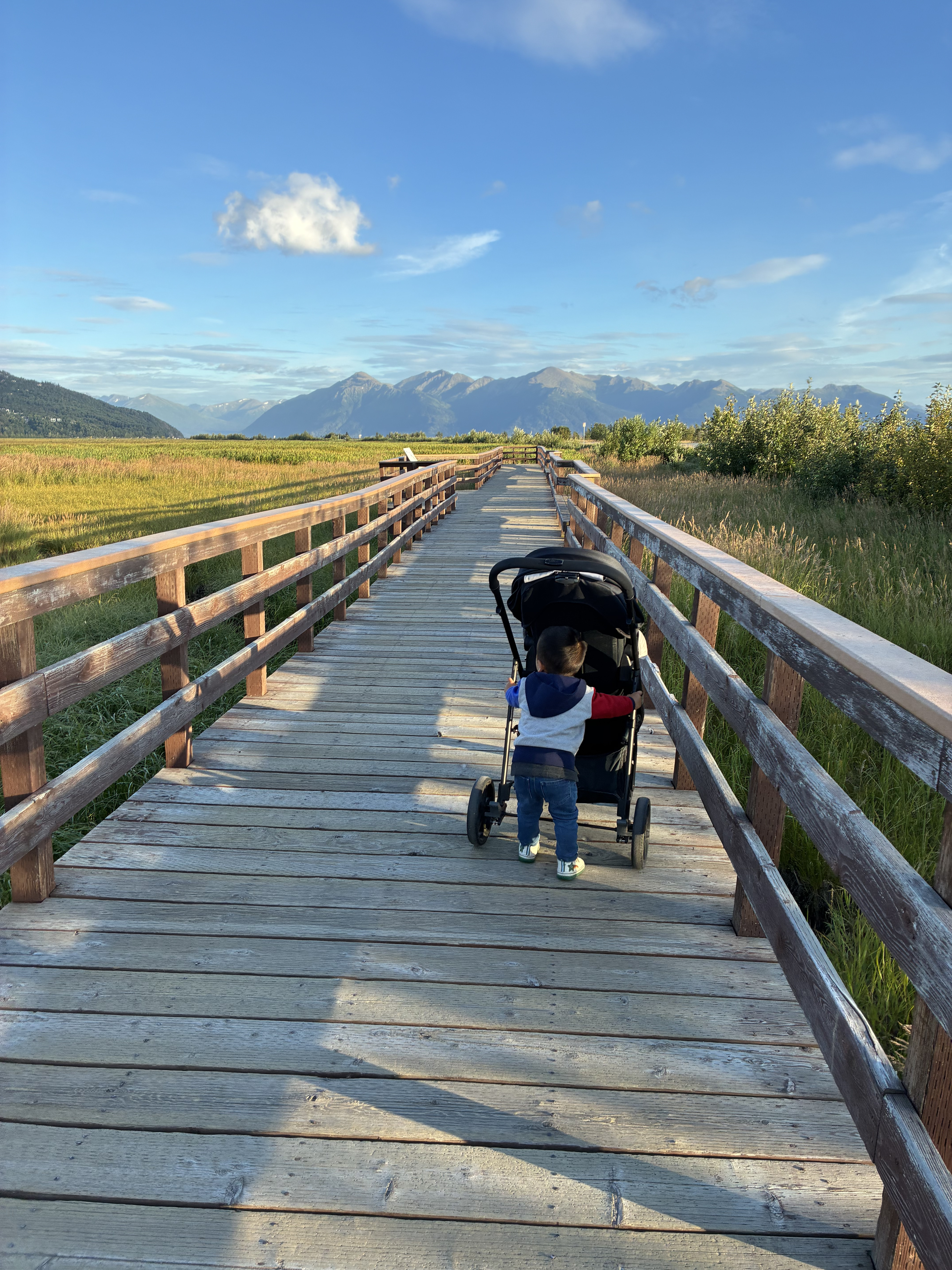 ,经Willow返回anchorage到 Potter Marsh Wildlife Viewing Boardwalk步道夕阳很美