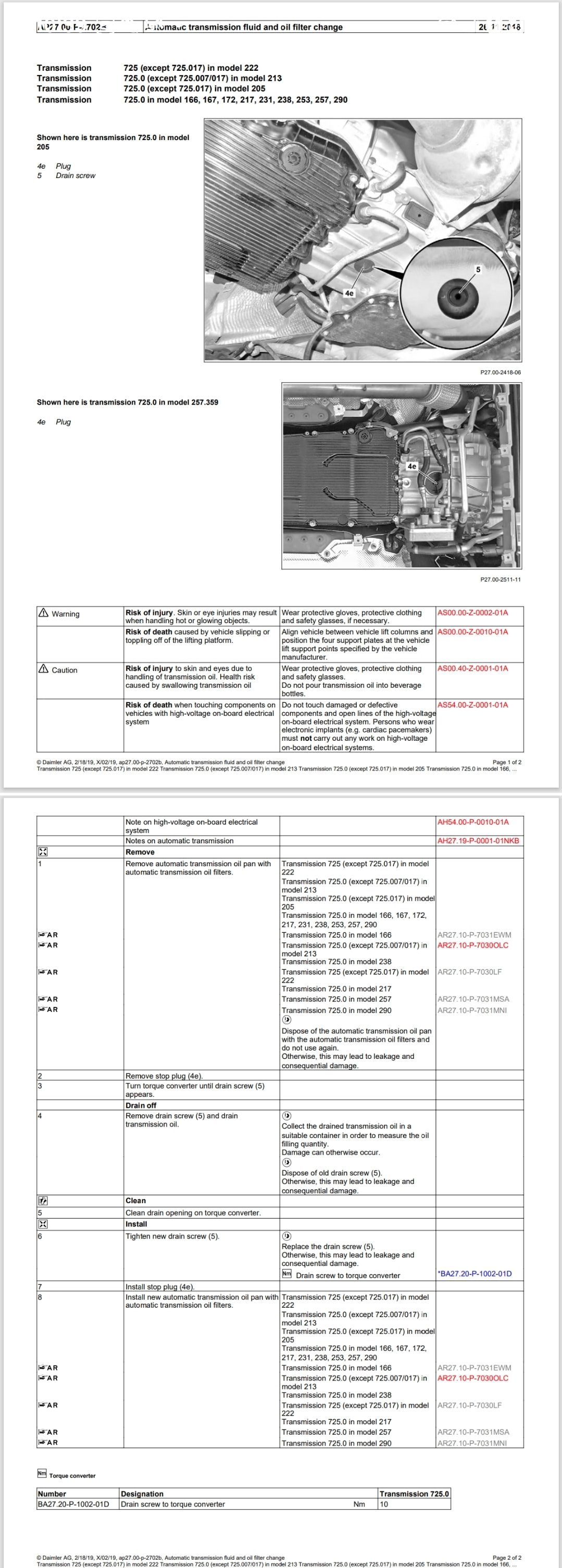 根据一位多年经验 Mercedes Mechanics 的说法(换过很多 transmission fluid),底壳取下都放干净后,新加的 transmission fluid 都可以用一个固定值,一般 Google 就能找到,比如 2020 GLE 450 就是 5L.
