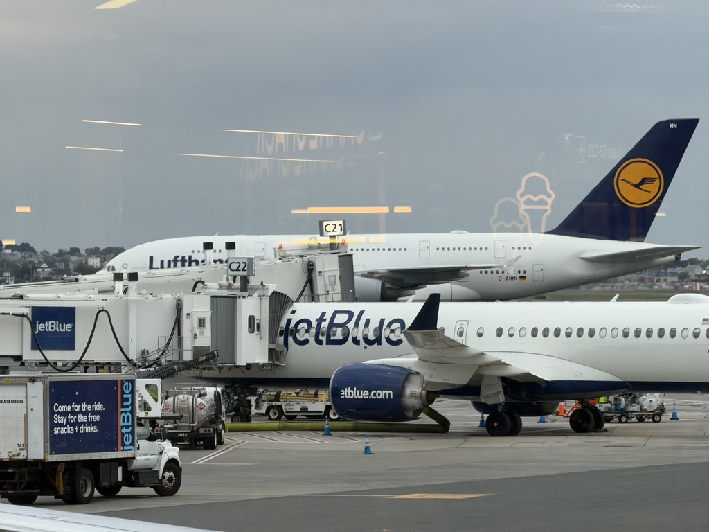 晚上好BOS。小小的Jetblue大大的Lufthansa