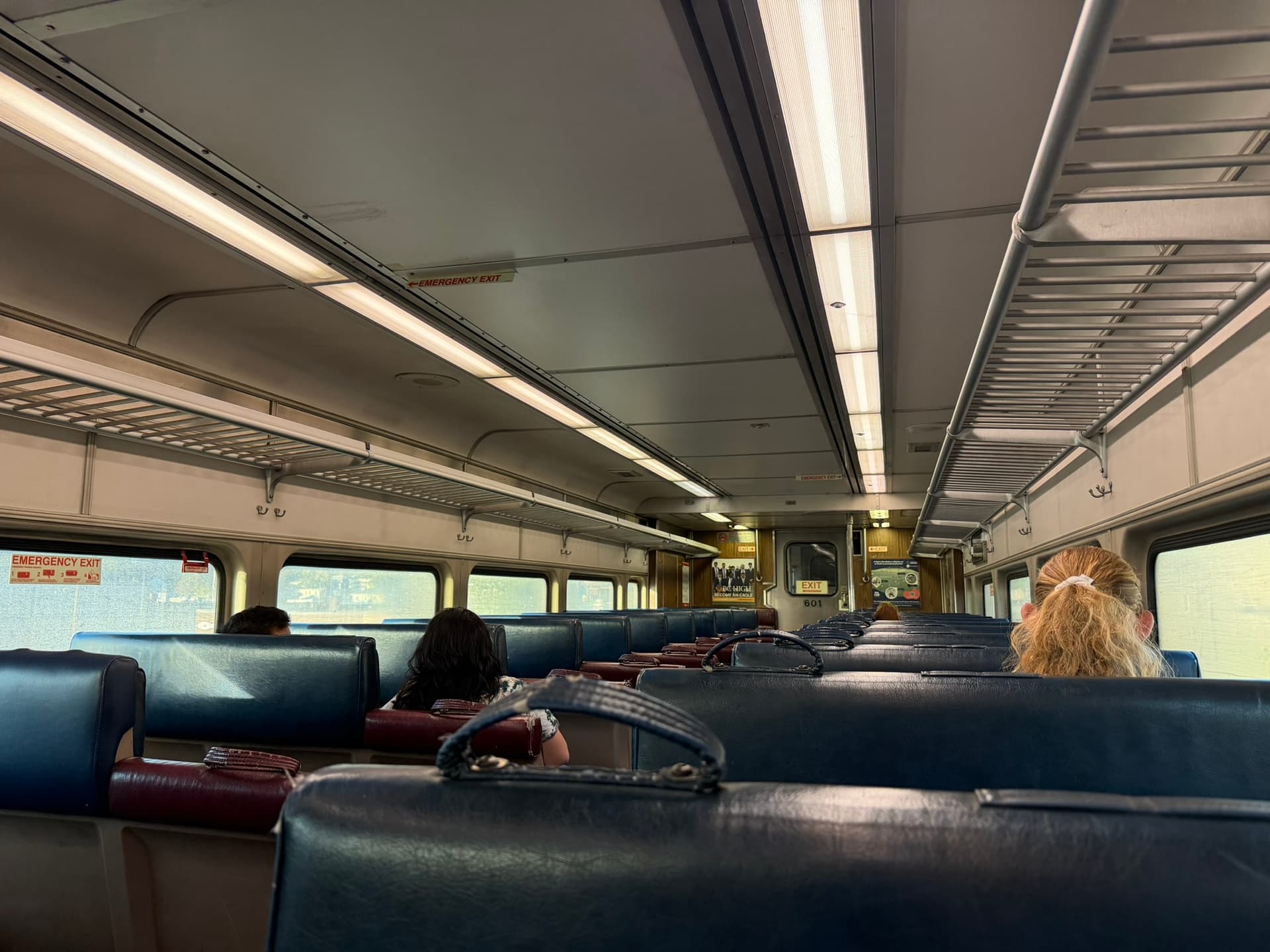 一出机场,7路公交就在门口,$2现金坐到Portland transportation Center,刚好赶上Amtrak,排队上车的时候在手机上买好了票,$26回Boston。