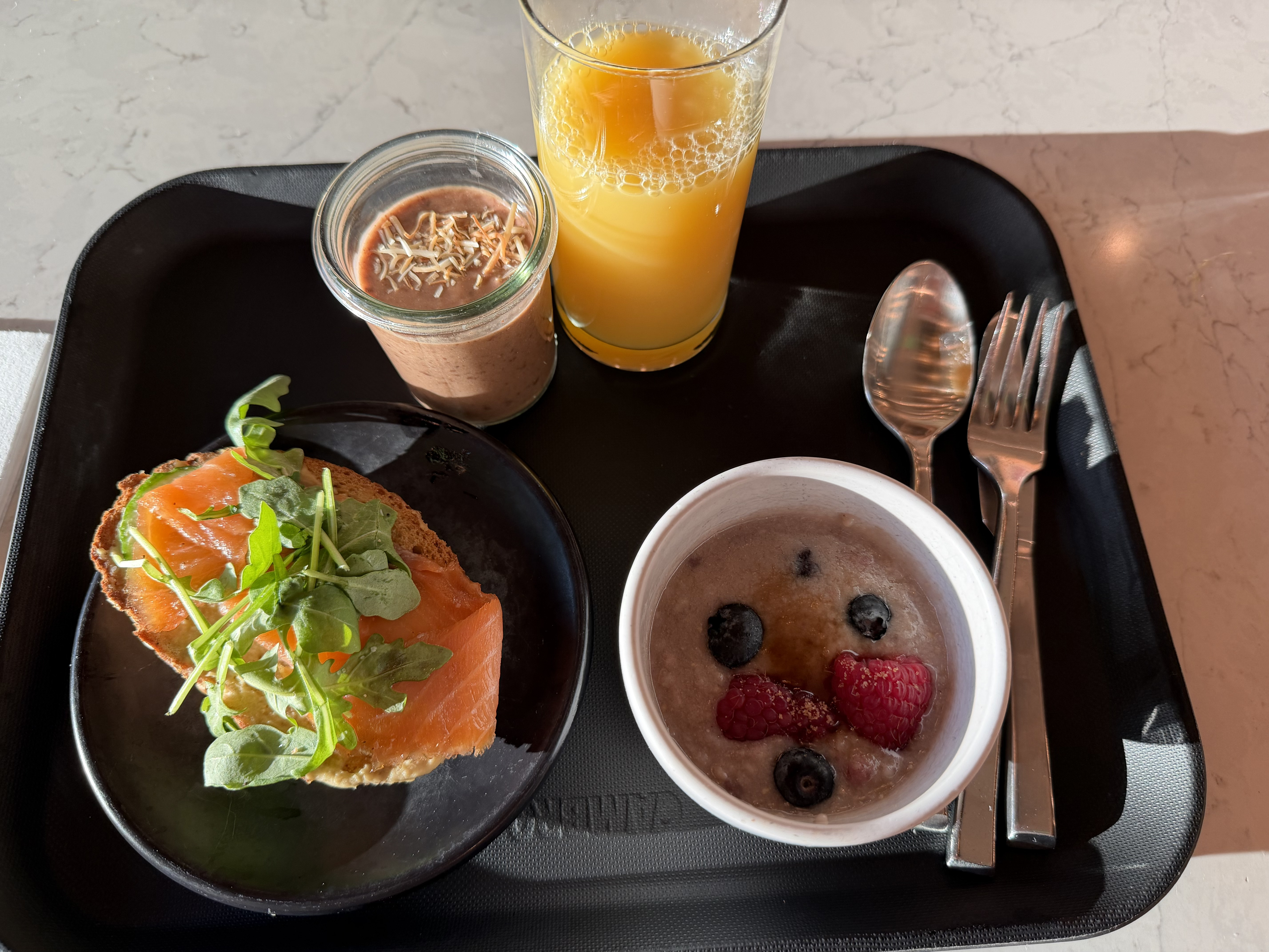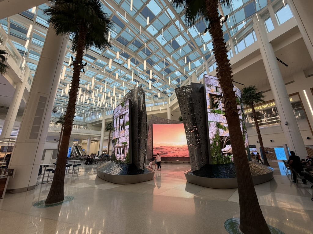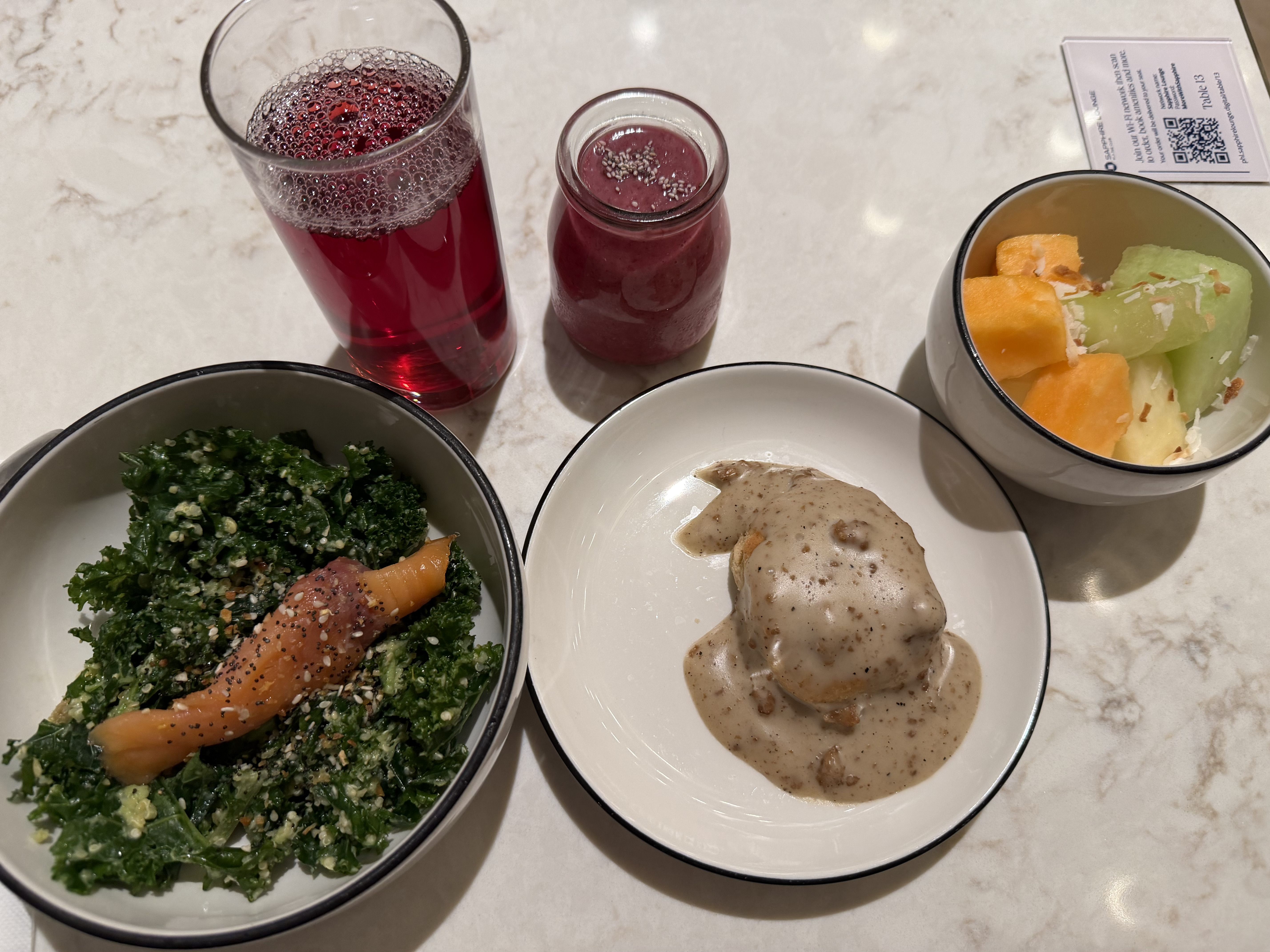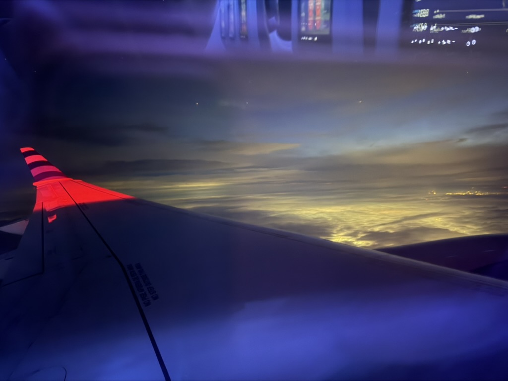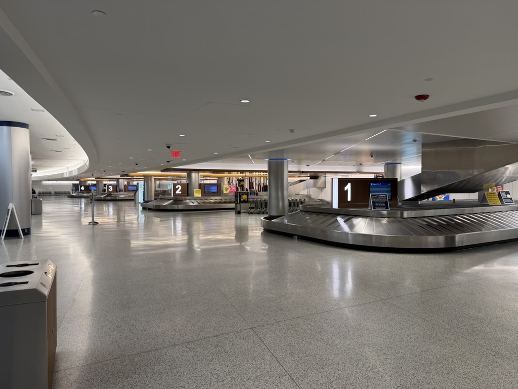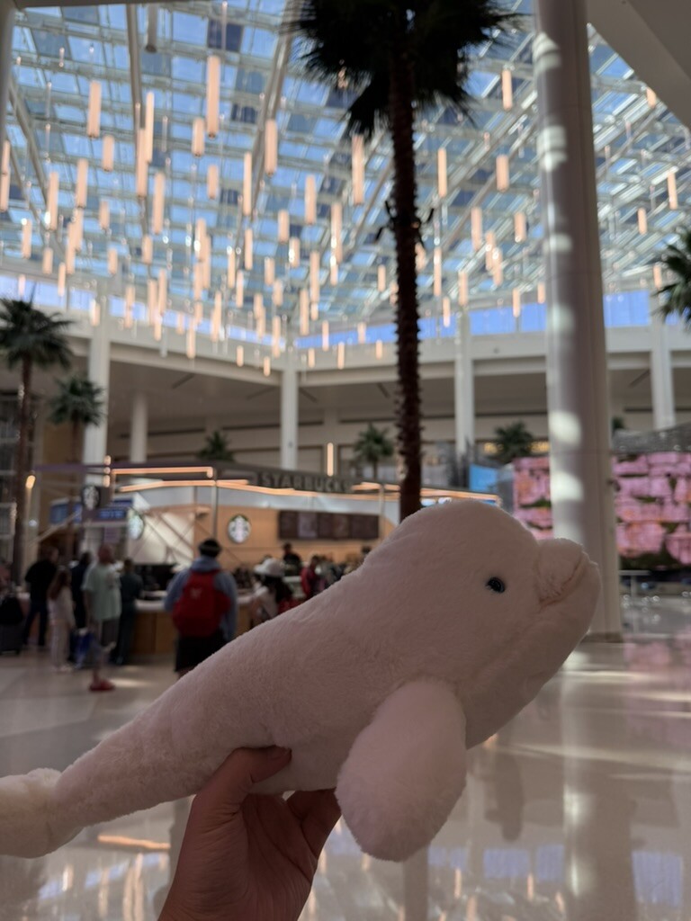 第二天7am的飞机,5:15起床下楼吃早饭,5:45坐shuttle,5:55到机场。晚睡星人的作息算是调过来了。