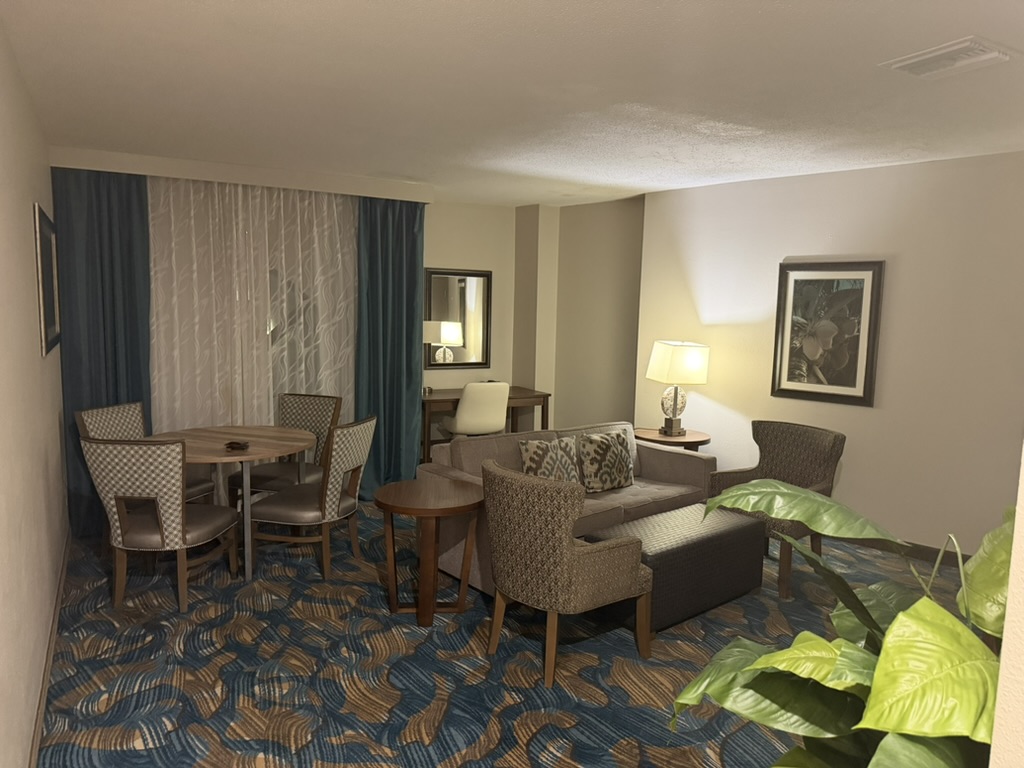 住在DoubleTree West Palm Beach Airport,39k Hilton。虽然酒店也是旧旧的,但是给的套房相当巨大,一进门甚至没找到床。