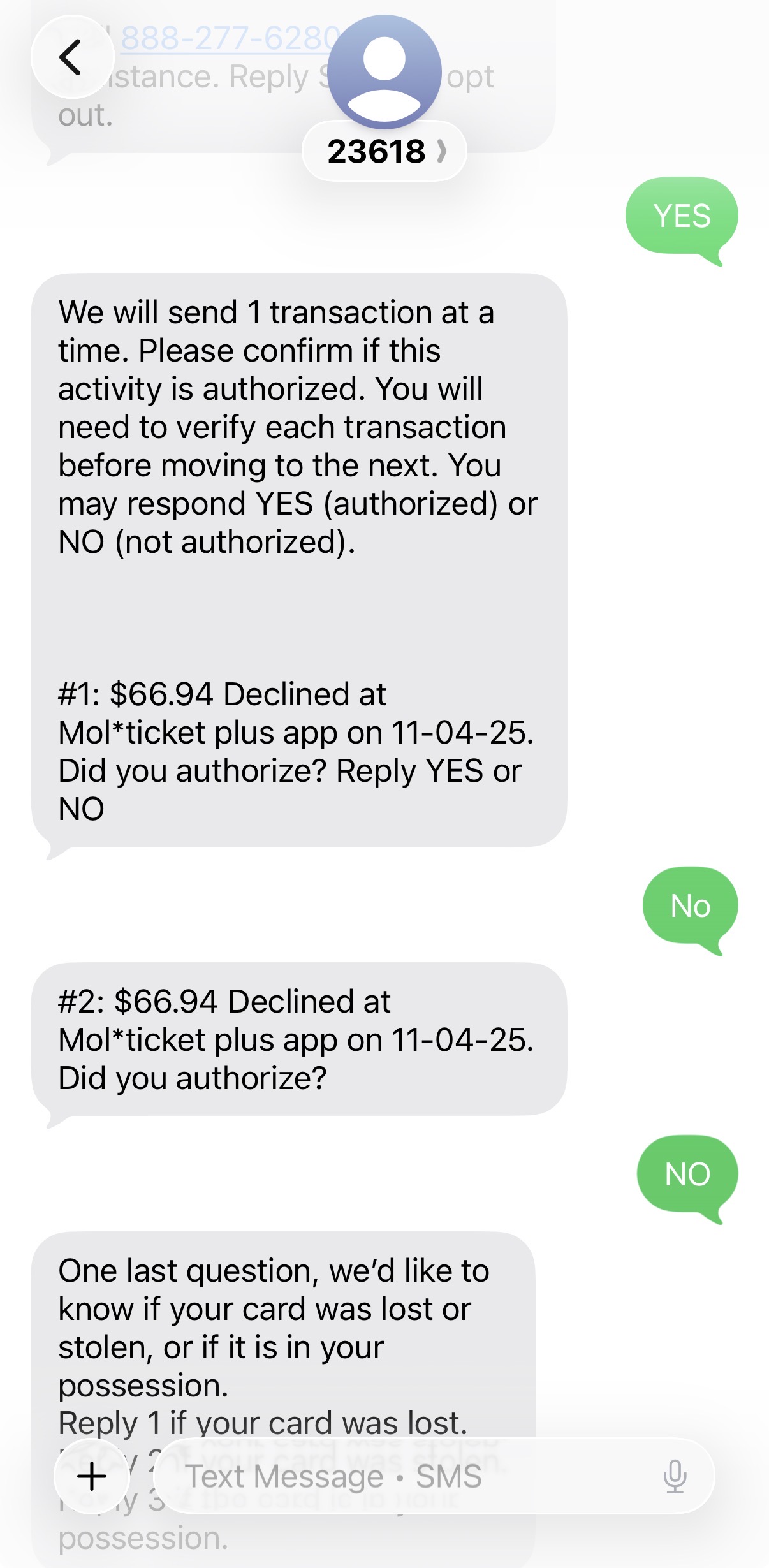 骗子刷卡在app里买票,收到Schwab普通短信让我验证刷卡,自然是全部NO……然后卡被锁。