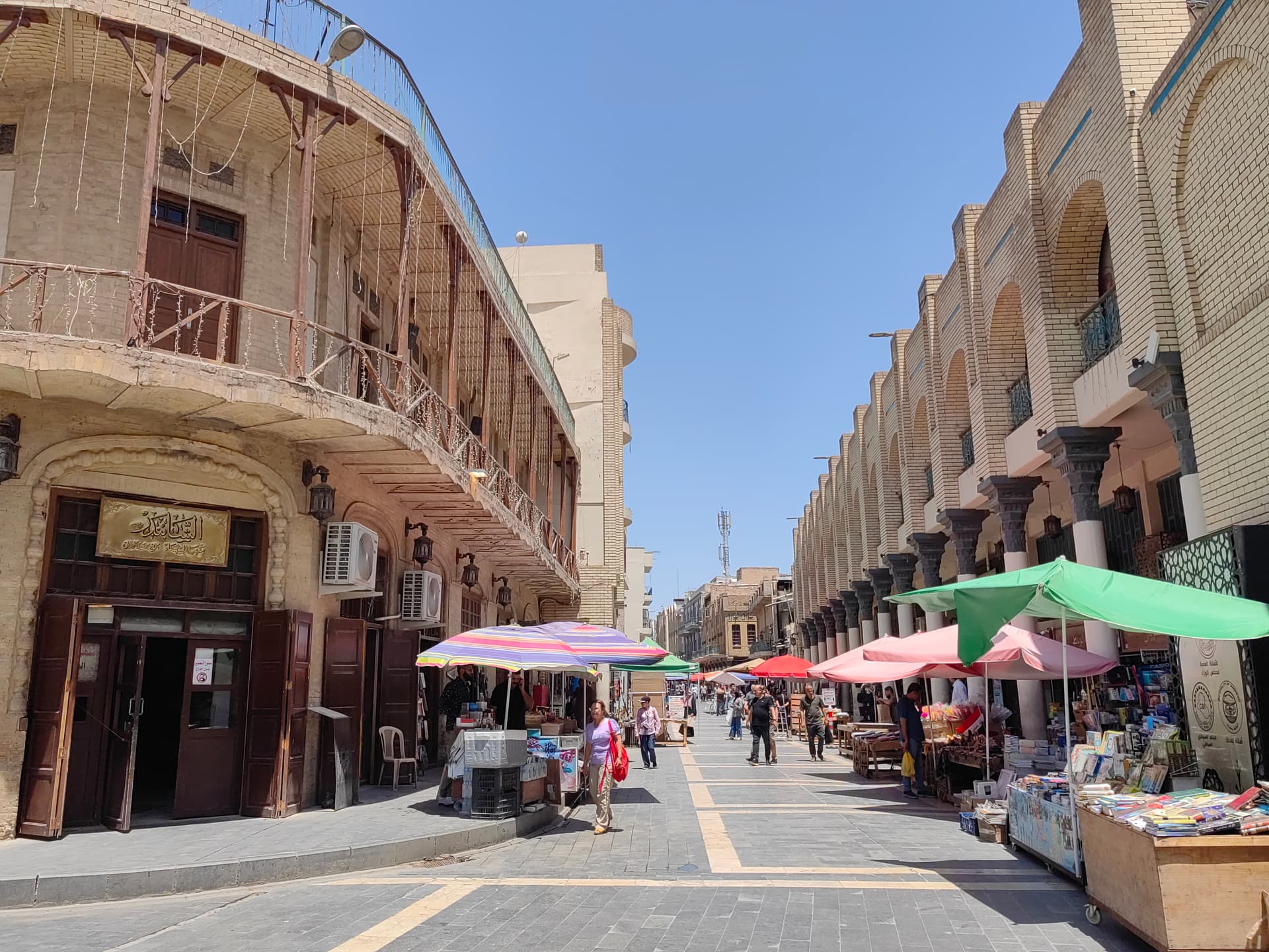 博物馆拍个照惹来便衣,后来想可能因为靠近绿区。重兵镇守的绿区位于底格里斯河西岸是伊拉克权力核心所在,当年美军政府也在这里。2003年“开放”后可开车穿过但不能停车,附近GPS没法定位。红区涵盖了绿区以外普通居民生活商业区。Al-Mutanabbi Street 附近逛逛街并打卡 Shabandar cafe。