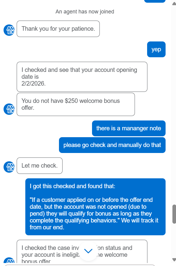 2.2收到amex的call,开了账户,然后就开始扯皮ineligible offer