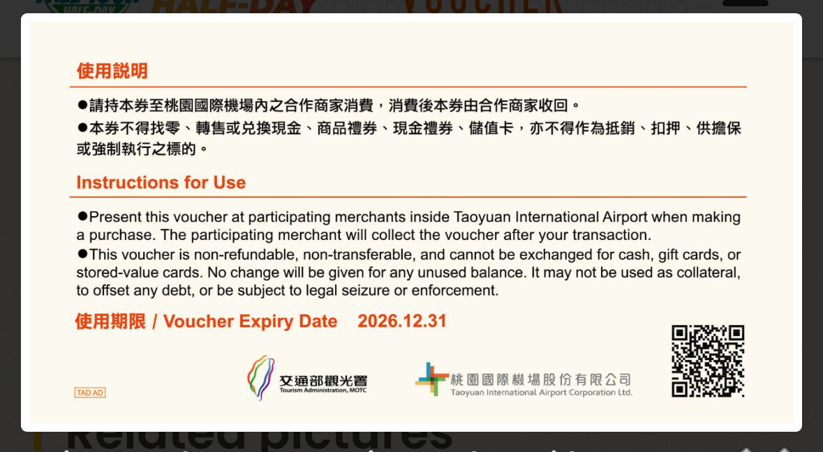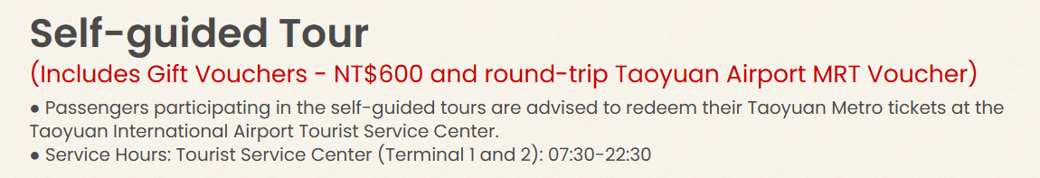 而且選的self-guided tour 標題上面寫著含 $600 voucher + airport to Taipei MRT.