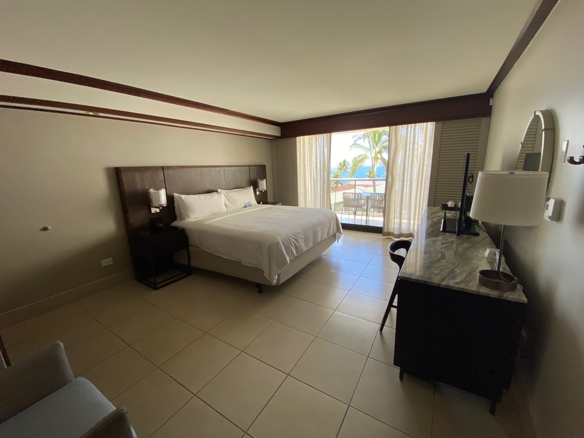 小知识:希尔顿网站上房间名称混乱,按能看到海景的程度应该是Ocean Front > Ocean View > Coastal View > Resort View > City View > 其他。Ocean View是看不到海滩的!只能勉强看到海平线。当初不清楚这个一直和前台要Ocean View,好在前台心领神会跟我们说你们其实是想要Ocean Front的吧,这才恍然大悟。