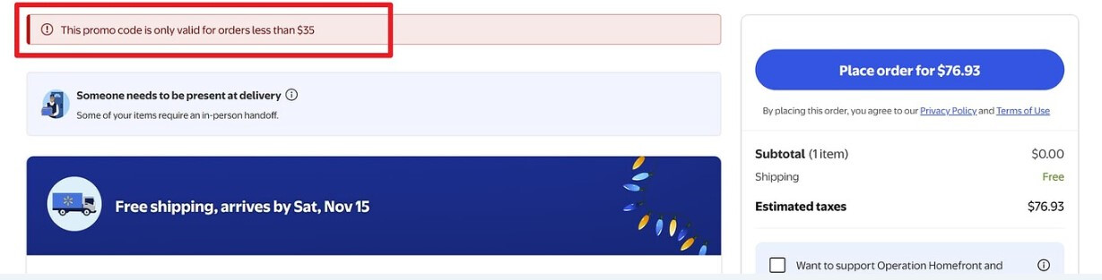 我是通过 Walmart 官网和APP 操作的(经常出现超时,所以就是两个轮流刷),一个手机就是一个订单,下完一个再下下一个。