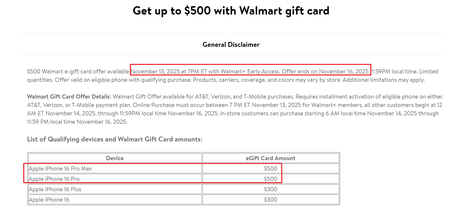 根据坛友JamesCameron的实测:网上购买可以用不同的walmart账号来下第四台16 pro+$500礼卡