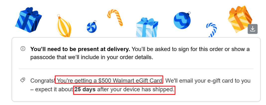 - Walmart 送的 $500 电子礼卡