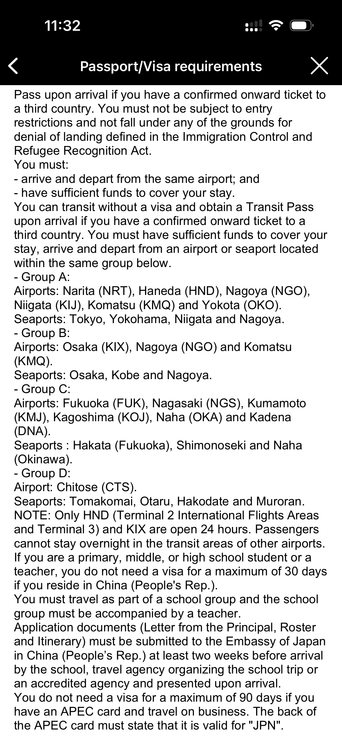 不清楚这个是怎么决定的,入管法Article 15 Section 2没写,Transit Pass应该归在Article 15 Section 2的