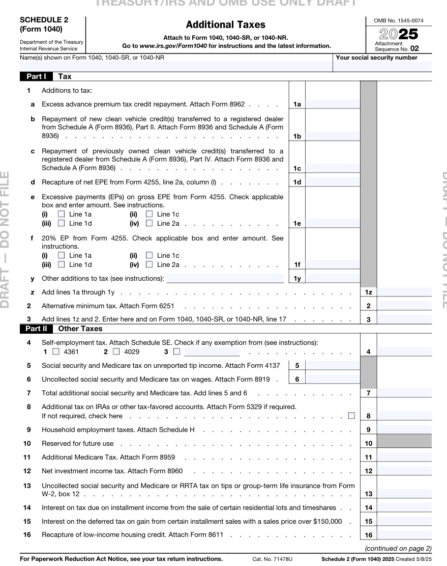Schedule 1 和 Schedule 3 跟 2024 年的表格一模一样,没有任何变化。而 Schedule 2 有一些小改动,其中最主要的一点是:它取消了申报 First-Time Homebuyer Credit的那个部分,因为这个抵免额已经不复存在。原来的 line 10现在变成了Reserved for Future Use