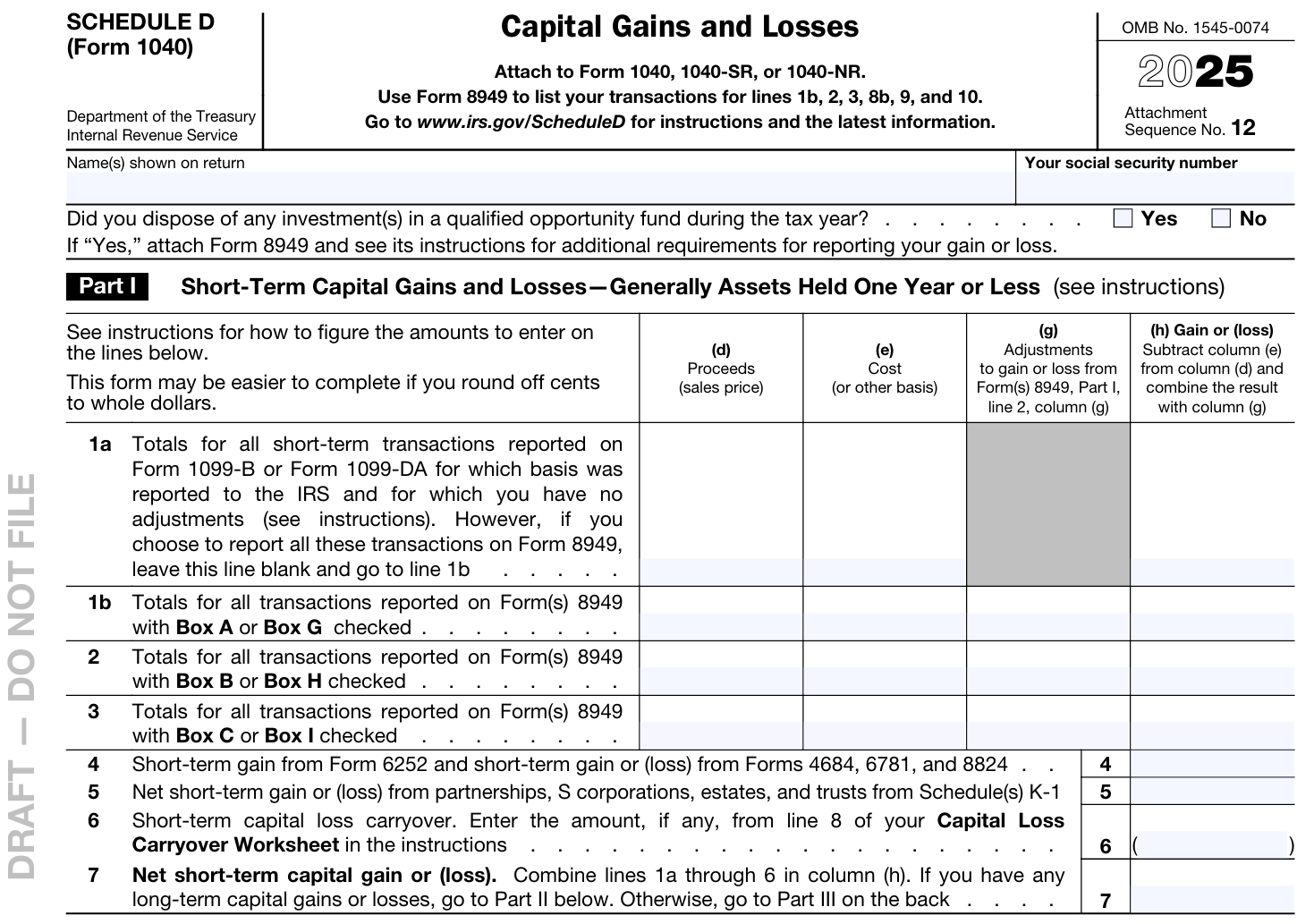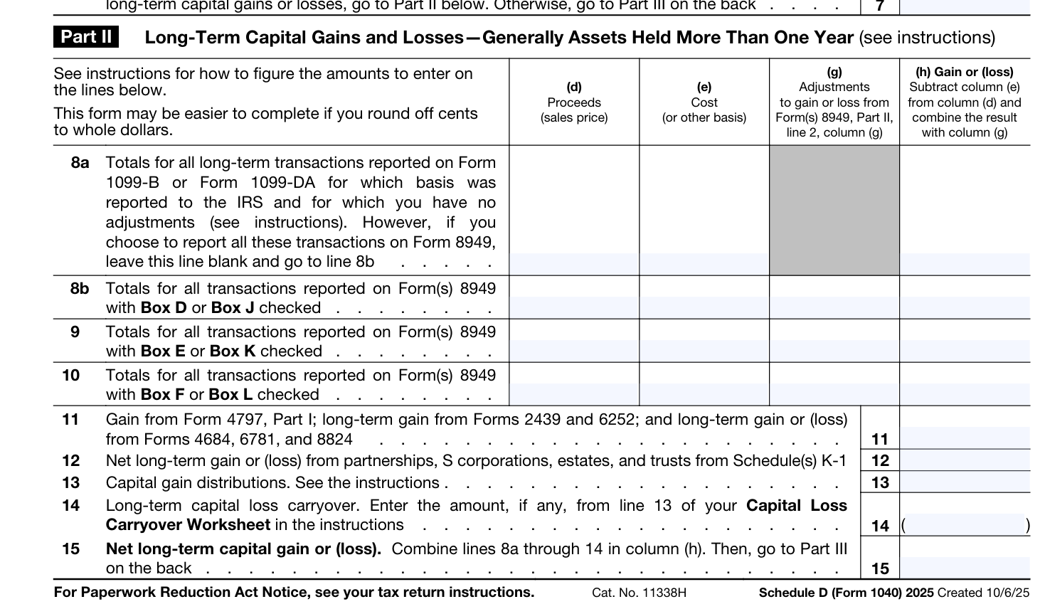 关于申报资本利得和损失的 Schedule D 表格,有几行做了修改,现在它们会用新版 Form 8949上新增的打勾选项。而 8949 上总共新增了6个打勾的框:3个是用来申报短期交易的,另外3个是申报长期交易的。这6个新框主要是为了解决数字资产Digital Asset,比如比特币的申报问题,这次新出了一个 Form 1099-DA 专门用来报数字资产。总体上资本利得的申报变得复杂了,主要是为了精确追踪和区分不同情况下数字资产的交易。