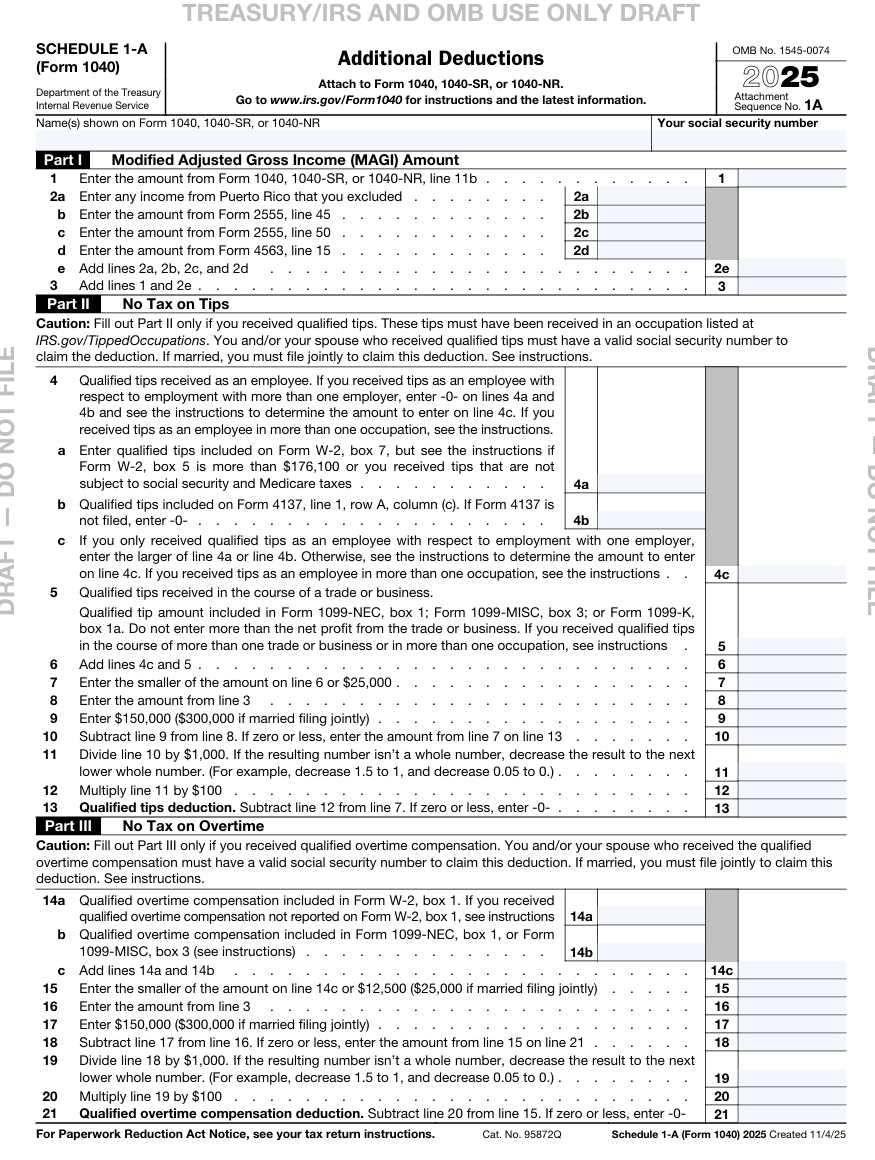 重点!!!2025税年新增加税表Schedule 1-A