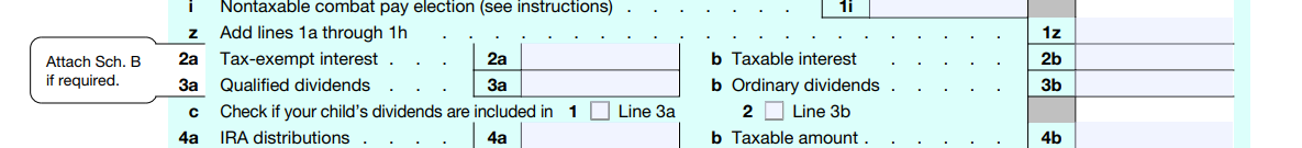 简单来说: 如果你的孩子有股息收入,而且你选择把这笔钱报到你的税表上(通常是因为孩子年龄小,或者这笔收入需要根据“啃老族税”/ Kiddie Tax 规则来处理),你就需要使用新增的 3c 行来特别说明这件事。