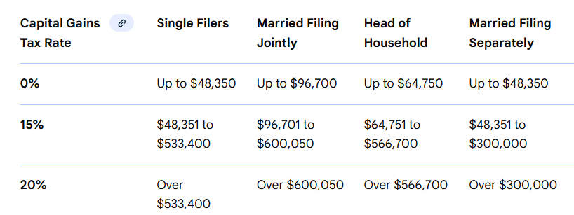 针对 2025 年的Long Term Capital Gain以及Qualified Dividend,税率划分如下:首先,0% 的免税率是有的,但收入不能超过一定门槛,比如MFJ是 96,700 美元,单身和MFS是 48,350 美元,户主是 64,750 美元,遗产和信托是 3,250 美元。超过这个门槛,就会适用 15% 的税率,直到收入达到下一档更高的门槛(联合申报是 600,050 美元等),超过这个最高门槛的部分就会适用 20% 的税率。另外,2025 年的“儿童税”(Kiddie Tax)豁免额是 2,700 美元,如果孩子的收入在 1,350 美元到 13,500 美元之间,家长可以选择把孩子的收入报到自己的税表上。具体来说,孩子的前 1,350 美元非劳动收入是免税的,接下来 1,350 美元是按孩子的税率缴税,超过 2,700 美元的部分就要按家长的最高边际税率来缴税。这个儿童税适用于年底不满 19 岁,或者在 19 岁到 23 岁之间但属于全职学生的孩子。最后提醒一下,到了 2026 年,10% 和 12% 这两个最低的税率档位会根据通货膨胀进行调整,这意味着按这两个低税率计税的收入金额会上涨。