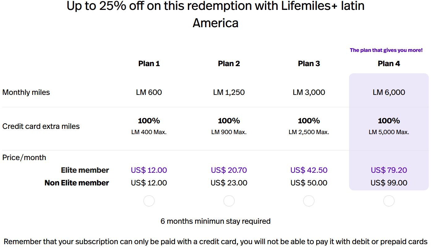 發現在兌換從BOG出發的票,會有這個Lifemiles+ latin America subscription plan,但都找不到它跟Lifemiles+ world的差別,也不知道最便宜的plan 1有沒有免費改票或取消,有人有用過嗎?