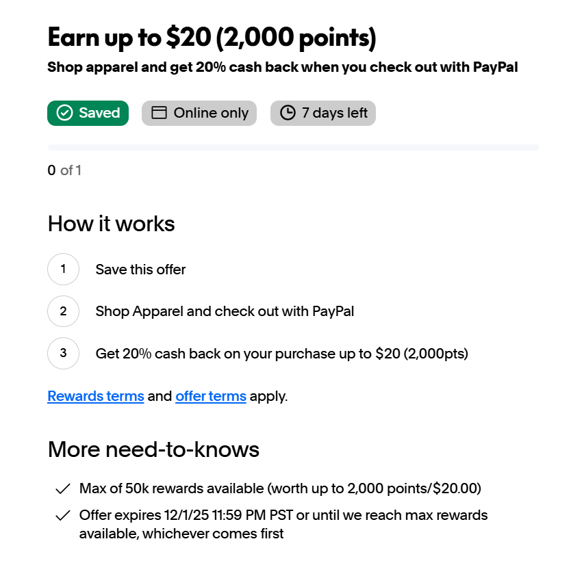 不知道咋定义 apparel,点链接直接进了 PayPal offers 的界面