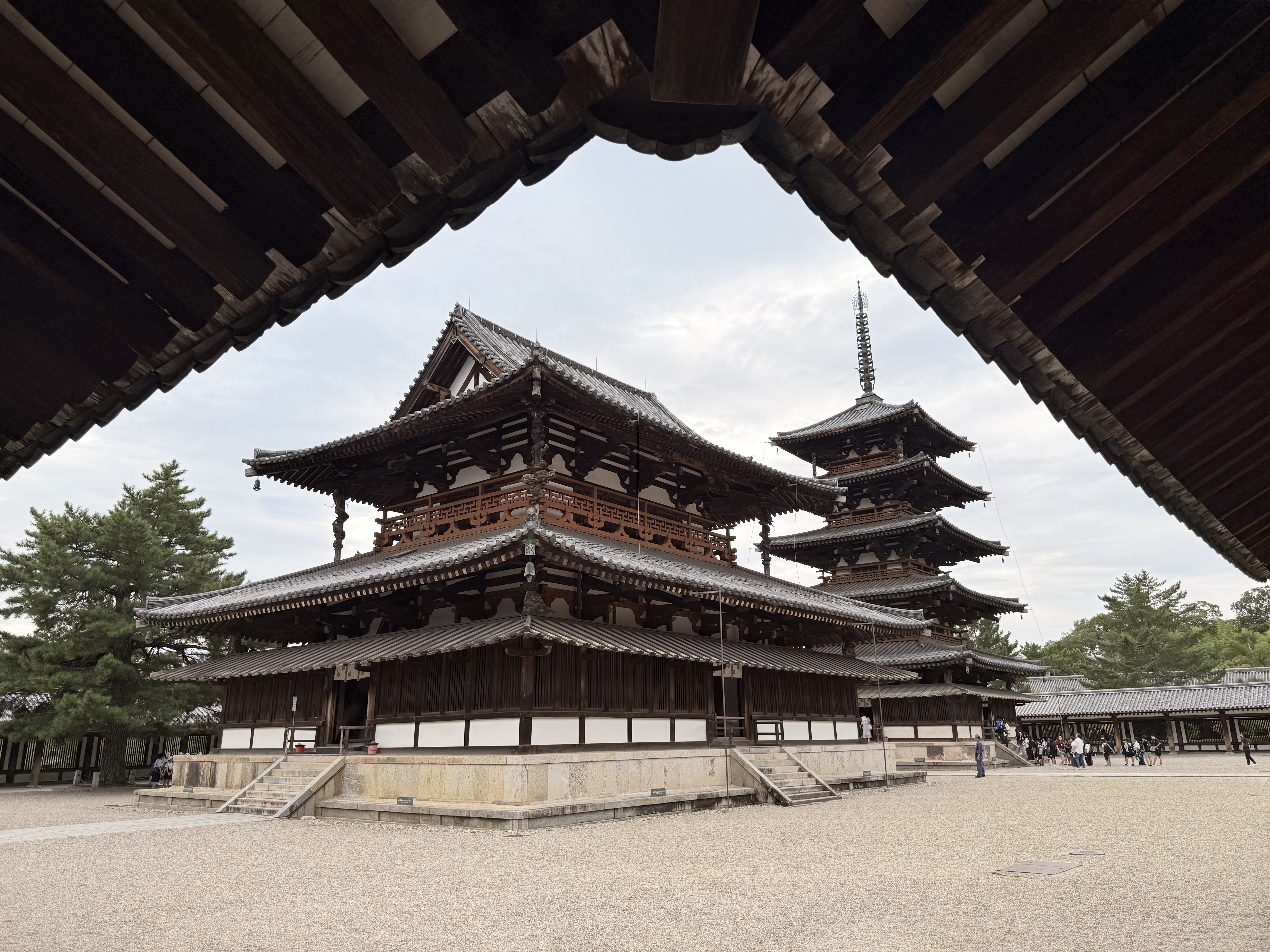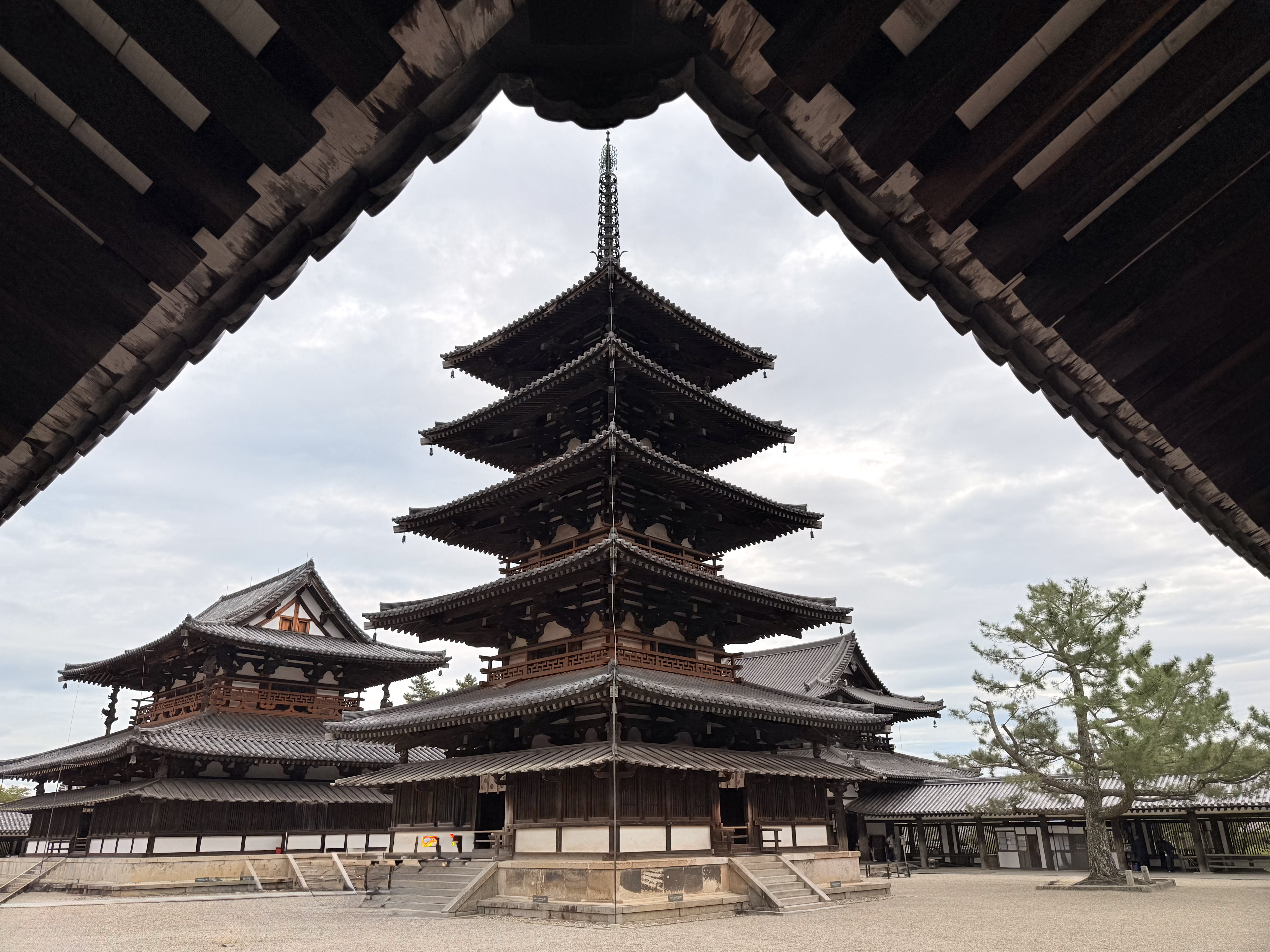 法隆寺五重塔。与中国的塔不同,日本的塔是空心的,中间以一根承重柱支撑,没有多层楼板和楼梯,所以上不去。