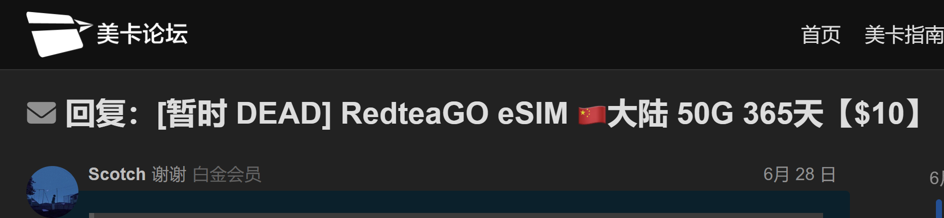 我改了下标题,有点歧义,这个是大陆的esim但是香港流量(不用翻墙),在香港是用不了的 ![]()