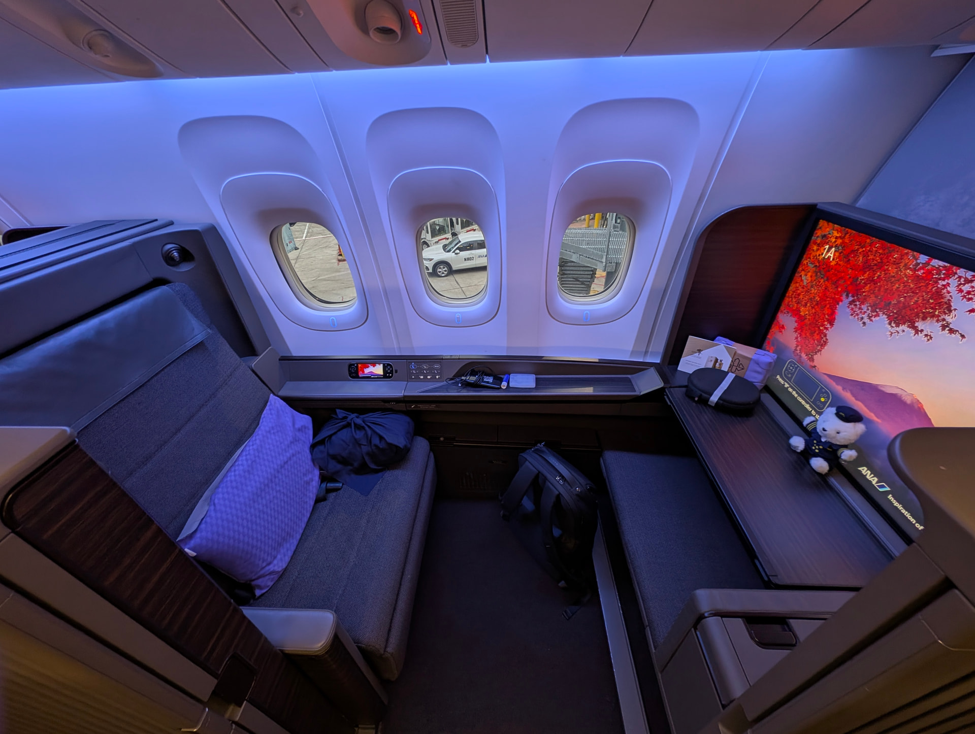 提前一年用ANA里程在日本官网上一放票就抢的。ORD这条线相对来说好抢,而且飞行时间也长一些。当时还是老舱,今年冬天schedule出来顺利变成新舱the suite。